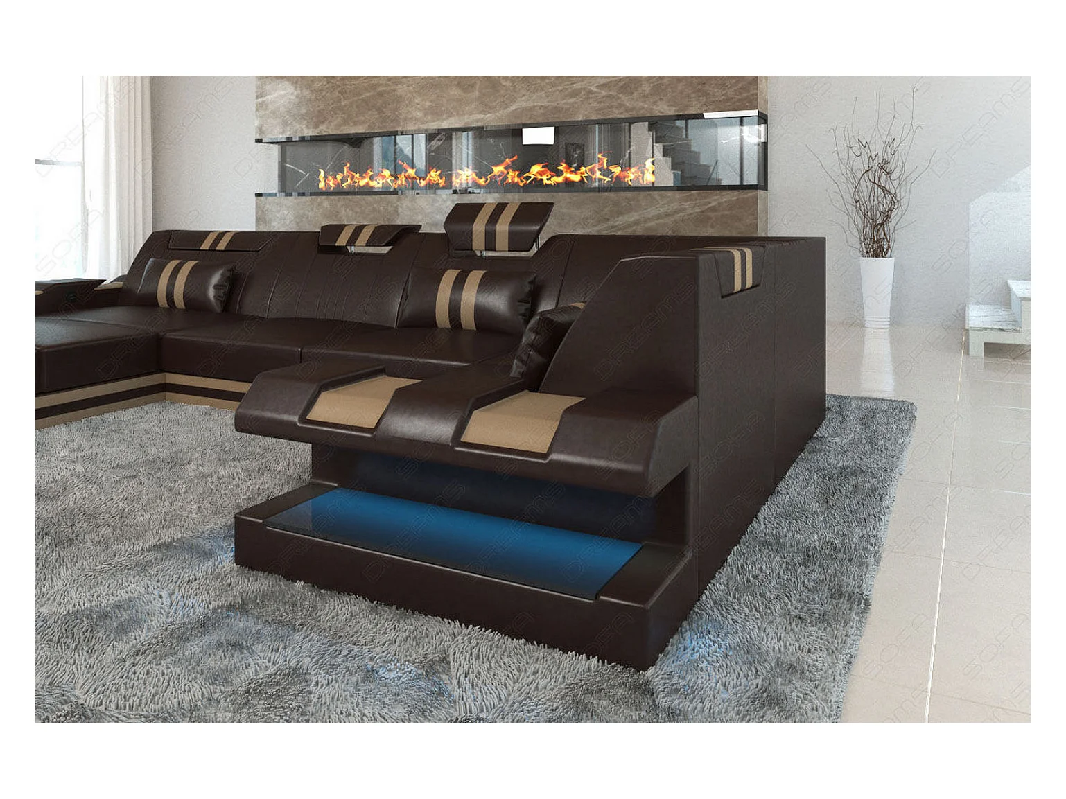 Ledersofa Apollonia U Form BL Dunkelbraun Sandbeige Links