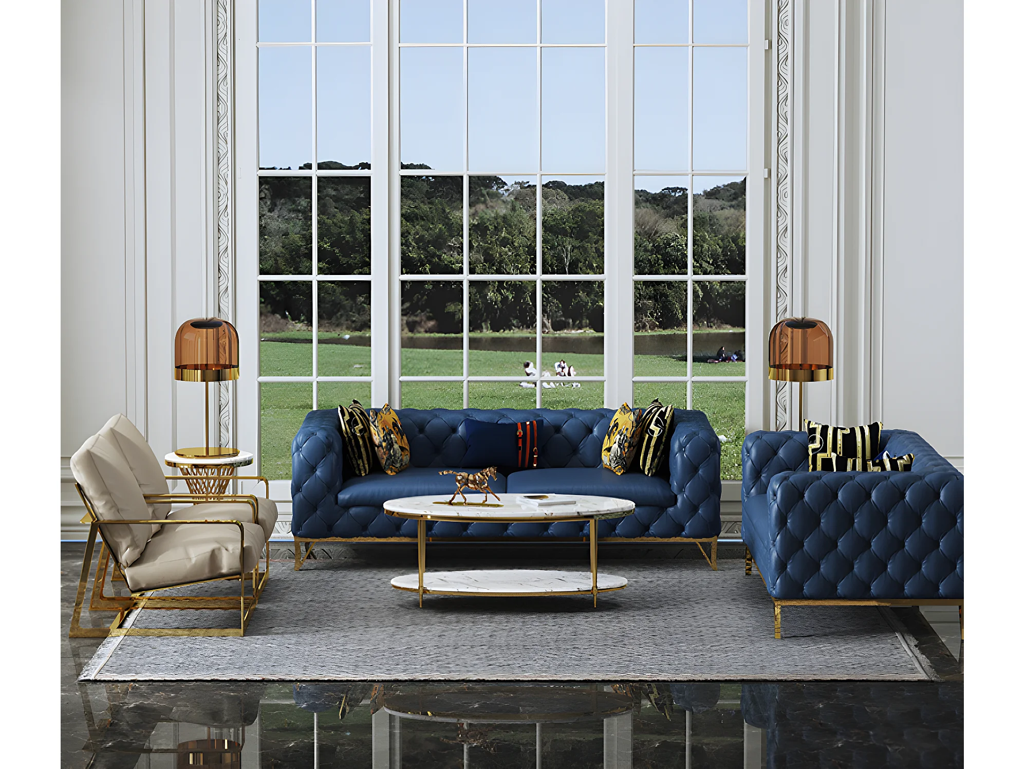 Ledersofa Sofagarnitur 3+2 Sitzer Set Garnitur Polstersofa Couch