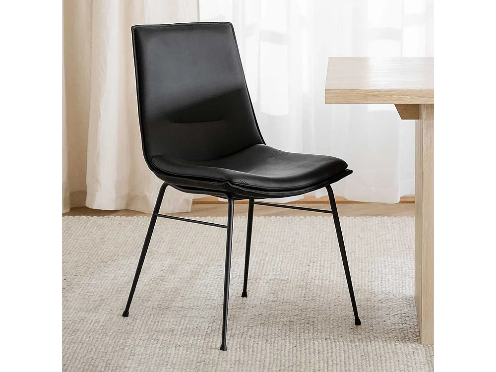 Lederstuhl Set in Schwarz Gestell aus Metall (2er Set)