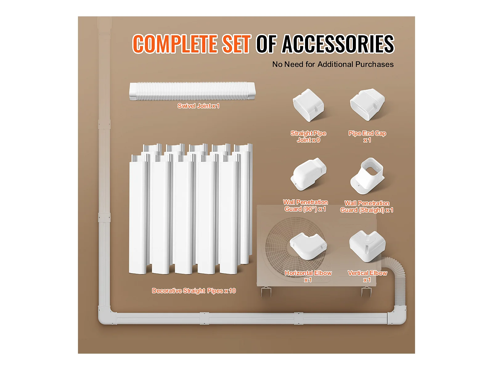 Leitungsabdeckung SucceBuy 7.62cm Breite 540 cm für Mini-Split/Klimaanlage, Dekoratives PVC für Klimaanlage, 10 Gerade Kanäle und Komponenten