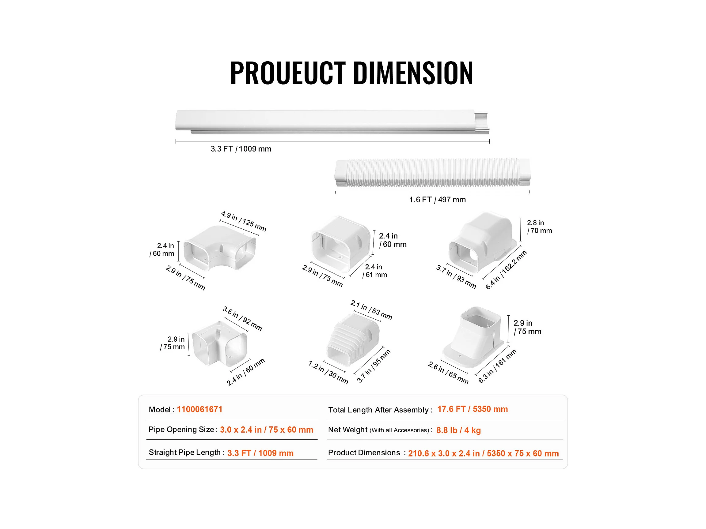 Leitungsschutz SucceBuy 7.62cm Breite 535 cm für Mini-Klimaanlage Getrennt/Zentral in PVC