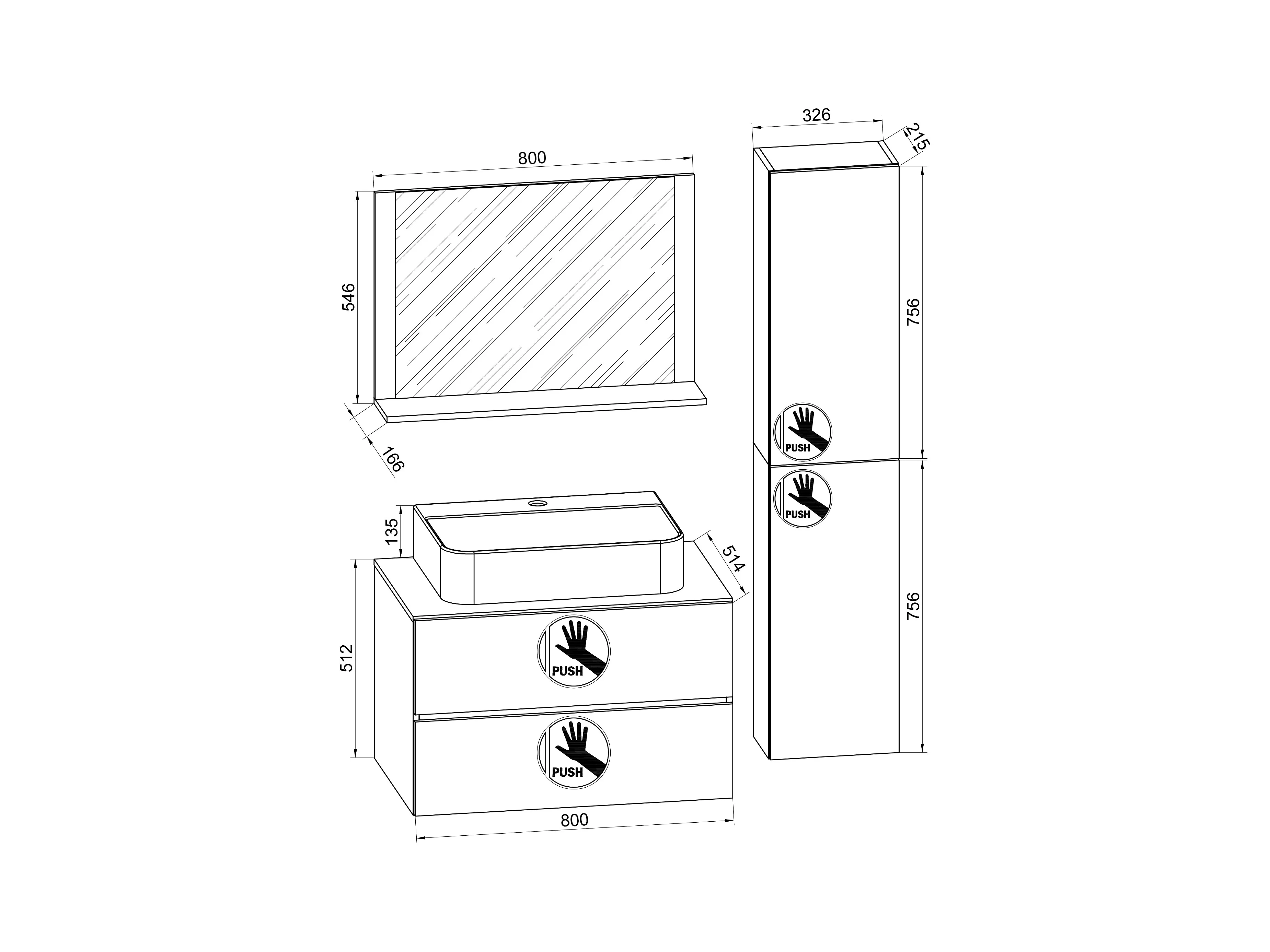 4-tlg. Waschplatz Waschtisch Lendas L Schublade