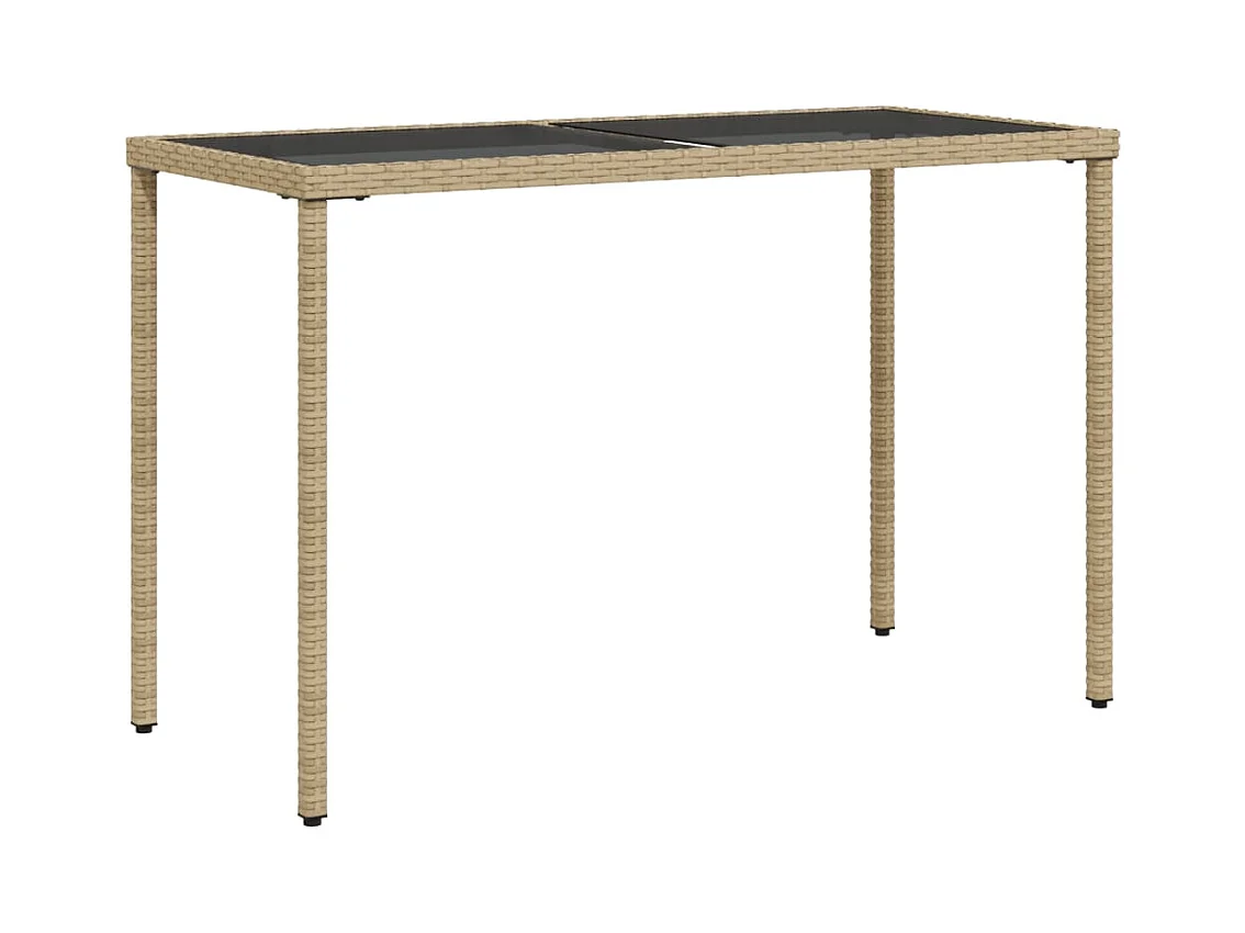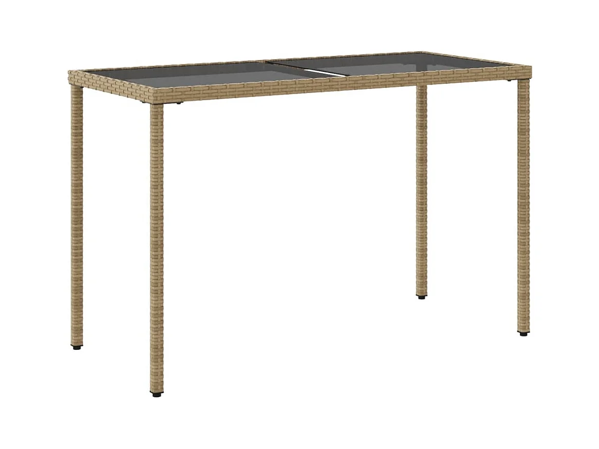 Leryn Gartentisch mit Glasplatte Beige 115x54x74 cm Poly Rattan