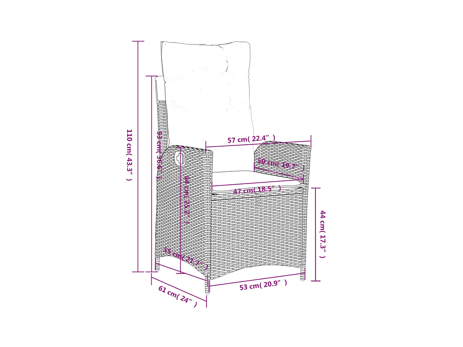 Liegender Gartenstuhl mit beigen Kissen aus Kunstharzgeflecht