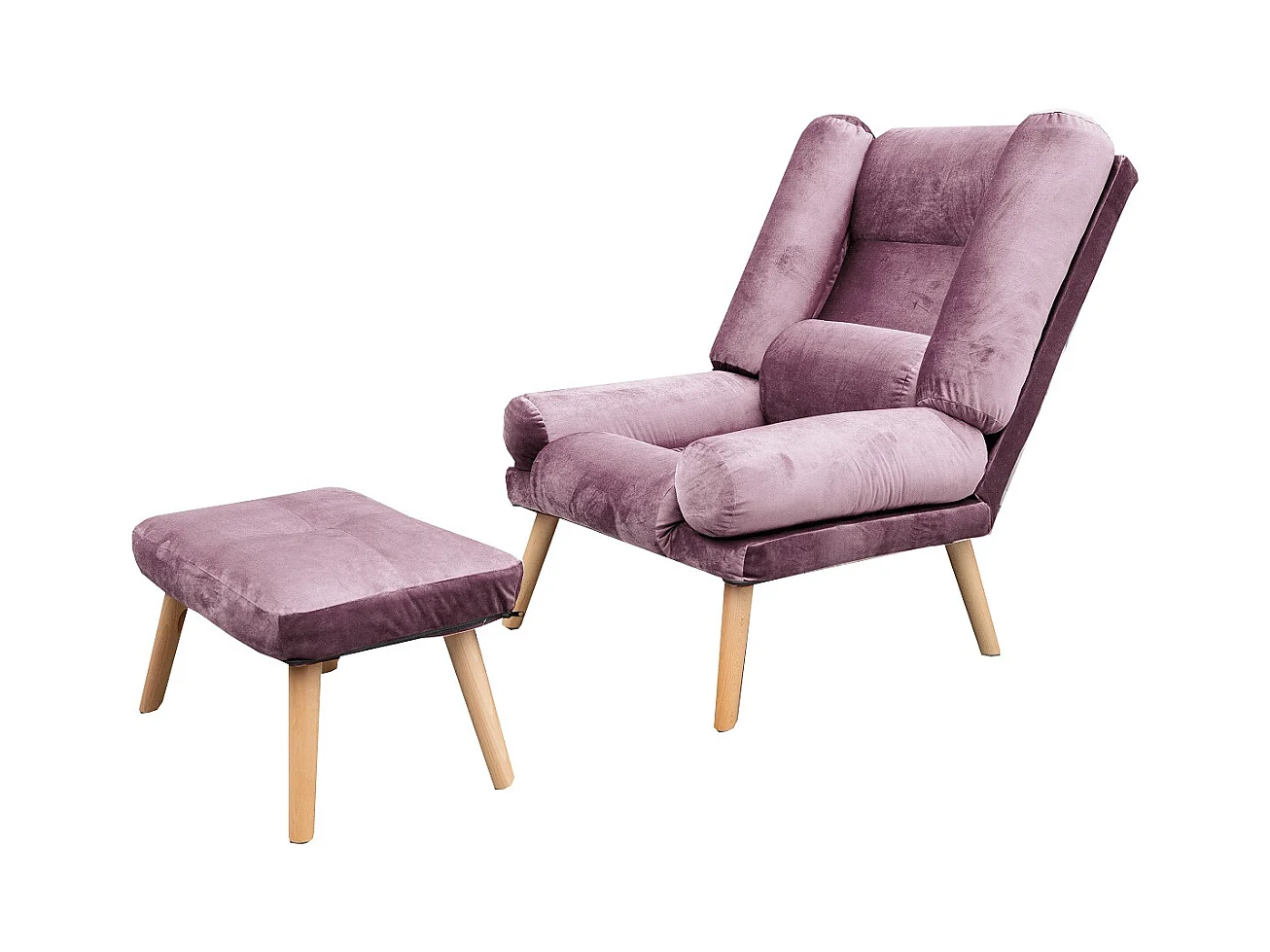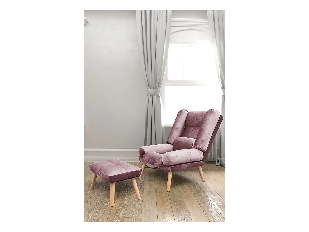 Liegesessel Sessel Relaxsessel Lola mit Fußhocker Rückenlehne 5-stufig einstellbar Farbe: Amor Velvet 4308 - rosa