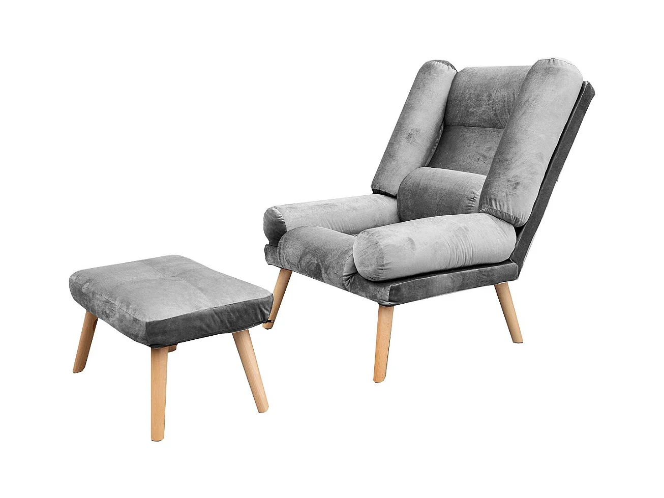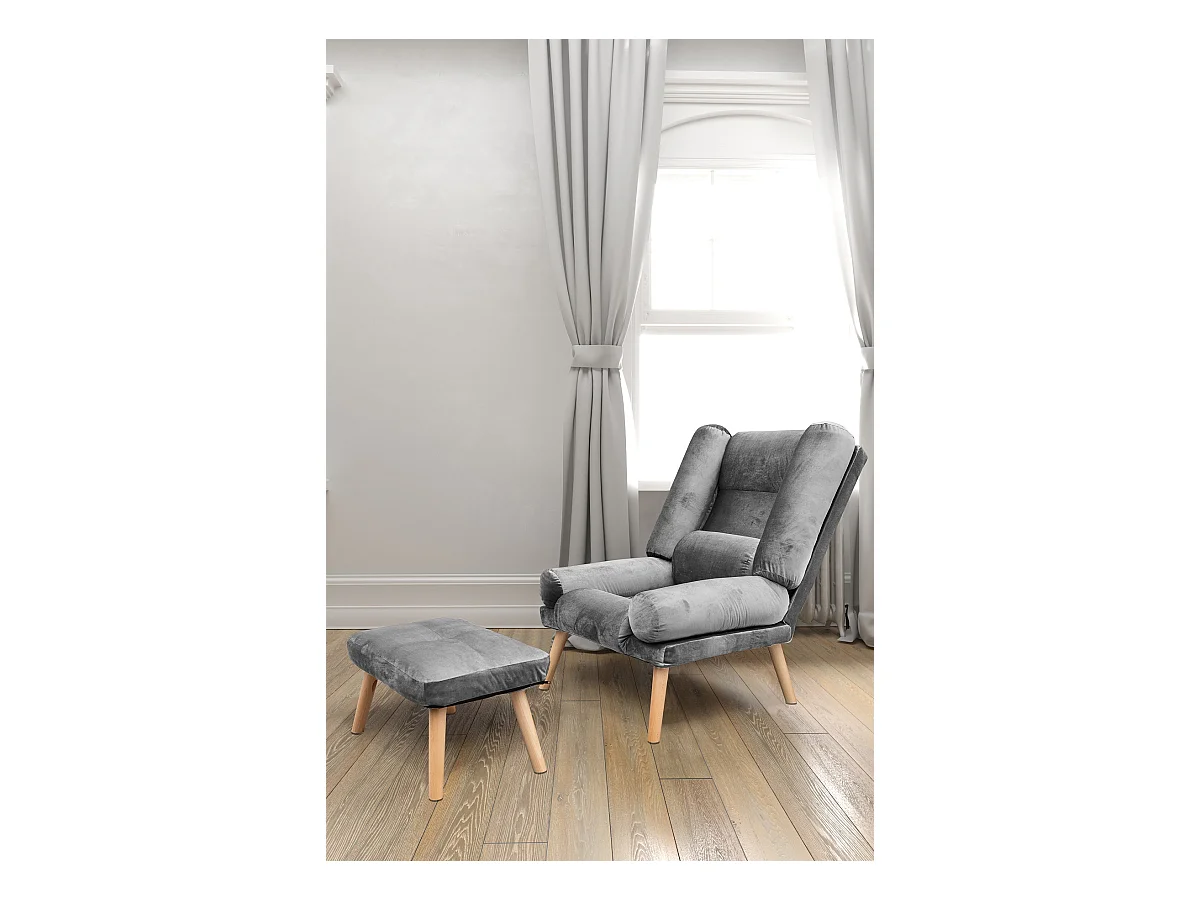 Liegesessel Sessel Relaxsessel Lola mit Fußhocker Rückenlehne 5-stufig einstellbar Farbe: Amor Velvet 4318 - grau