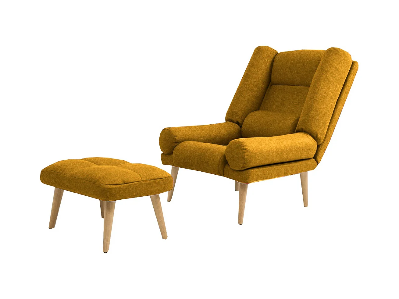Liegesessel Sessel Relaxsessel Lola mit Fußhocker Rückenlehne 5-stufig einstellbar Farbe: Samoa 05 - dunkelgelb