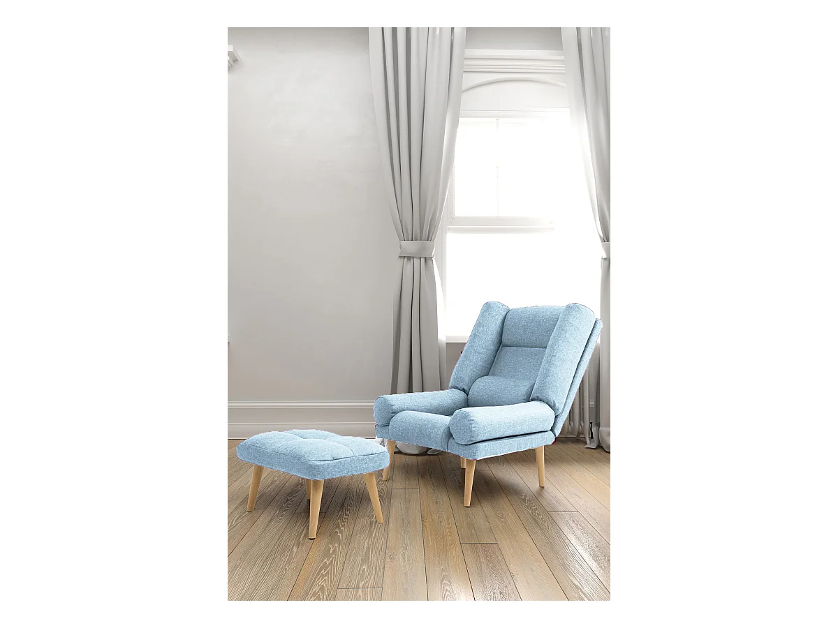 Liegesessel Sessel Relaxsessel Lola mit Fußhocker Rückenlehne 5-stufig einstellbar Farbe: Samoa 08 - hellblau