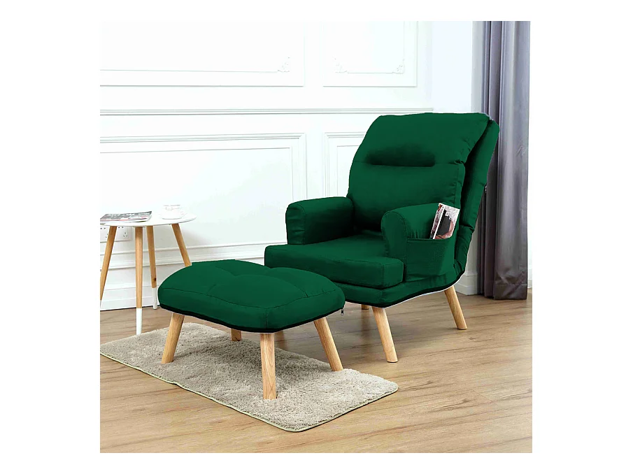 Liegesessel Sessel Relaxsessel Memo mit Fußhocker Rückenlehne 5-stufig einstellbar Farbe: Amor Velvet 4311 - dunkelgrün
