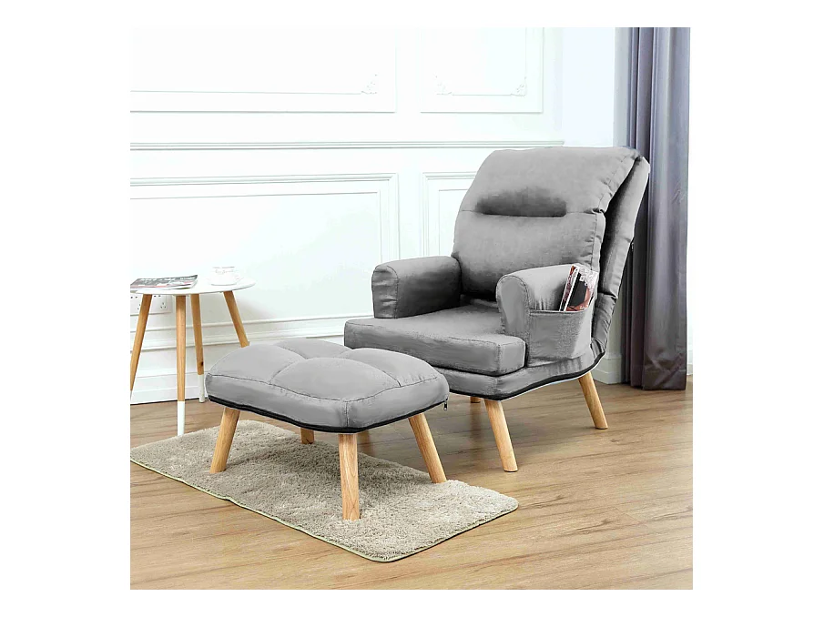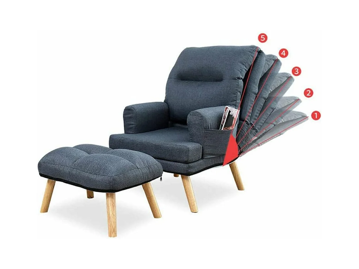 Liegesessel Sessel Relaxsessel Memo mit Fußhocker Rückenlehne 5-stufig einstellbar Farbe: Amor Velvet 4318 - grau