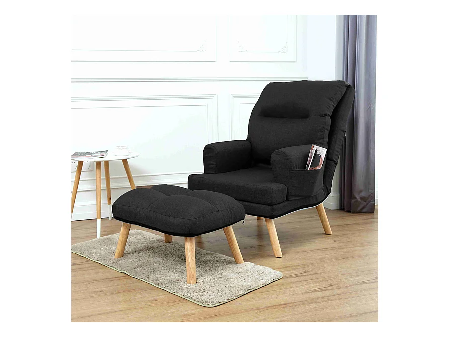 Liegesessel Sessel Relaxsessel Memo mit Fußhocker Rückenlehne 5-stufig einstellbar Farbe: Falcone 14 - schwarz