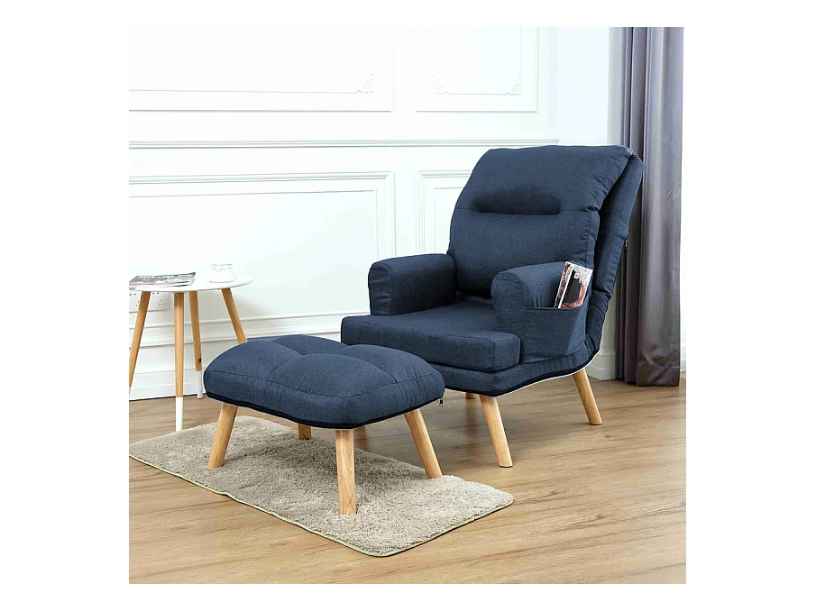 Liegesessel Sessel Relaxsessel Memo mit Fußhocker Rückenlehne 5-stufig einstellbar Farbe: Falcone 80 - dunkelblau