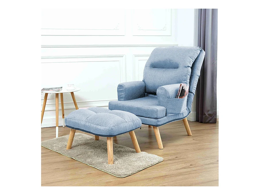 Liegesessel Sessel Relaxsessel Memo mit Fußhocker Rückenlehne 5-stufig einstellbar Farbe: Samoa 08 - hellblau
