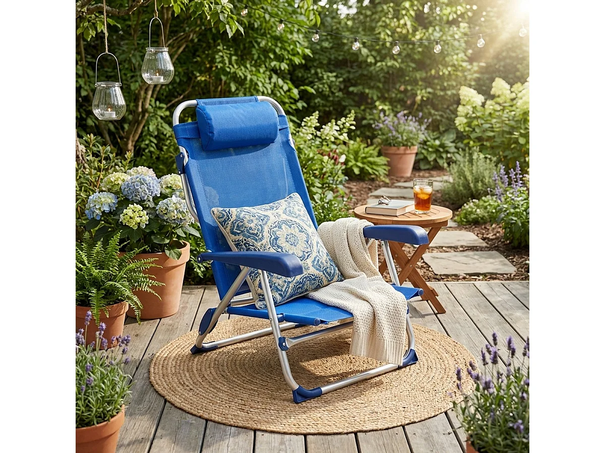 Liegestuhl Strandstuhl Klappbar mit Armlehne aus Aluminium für Strand Gargano - Blau