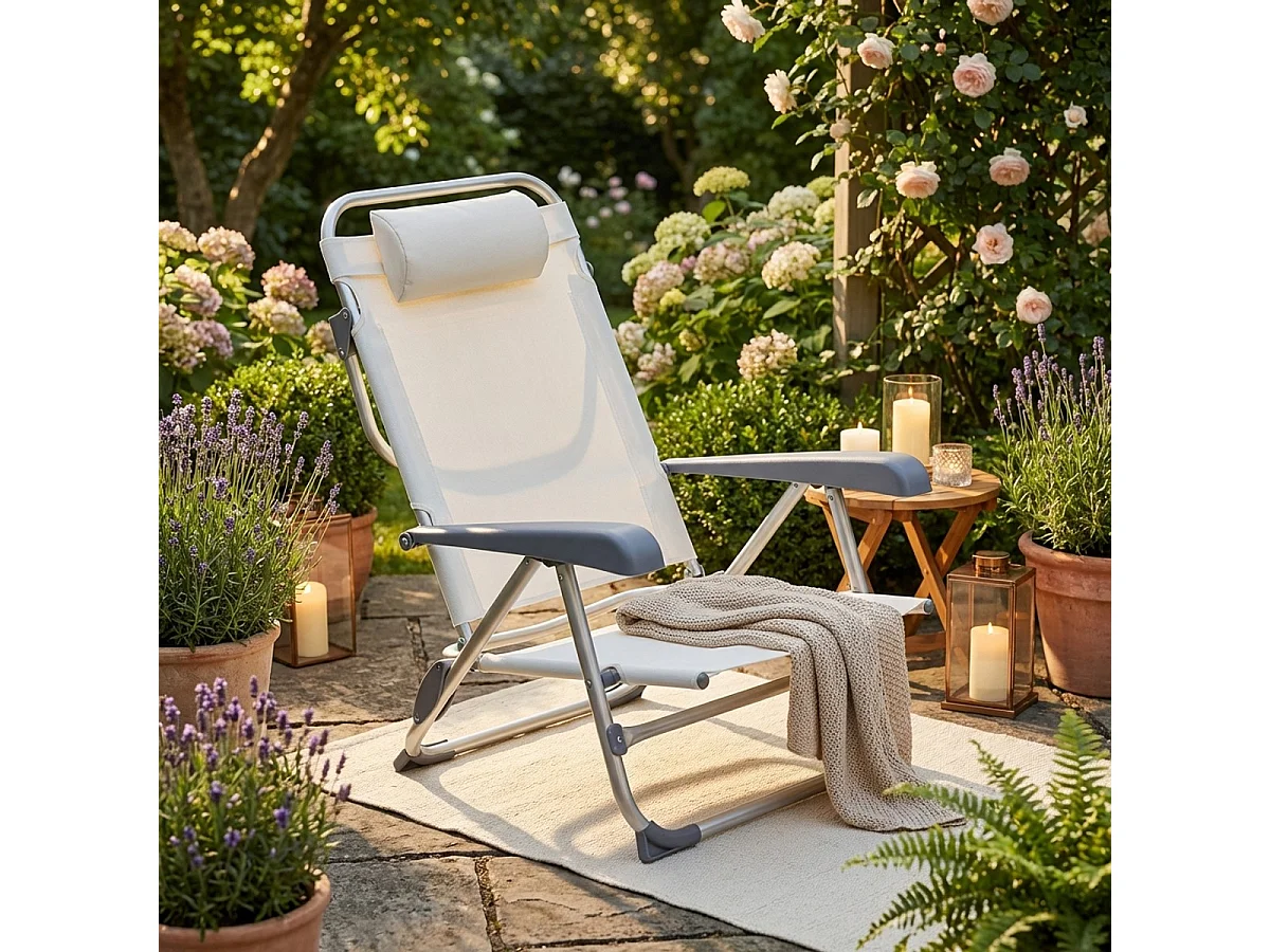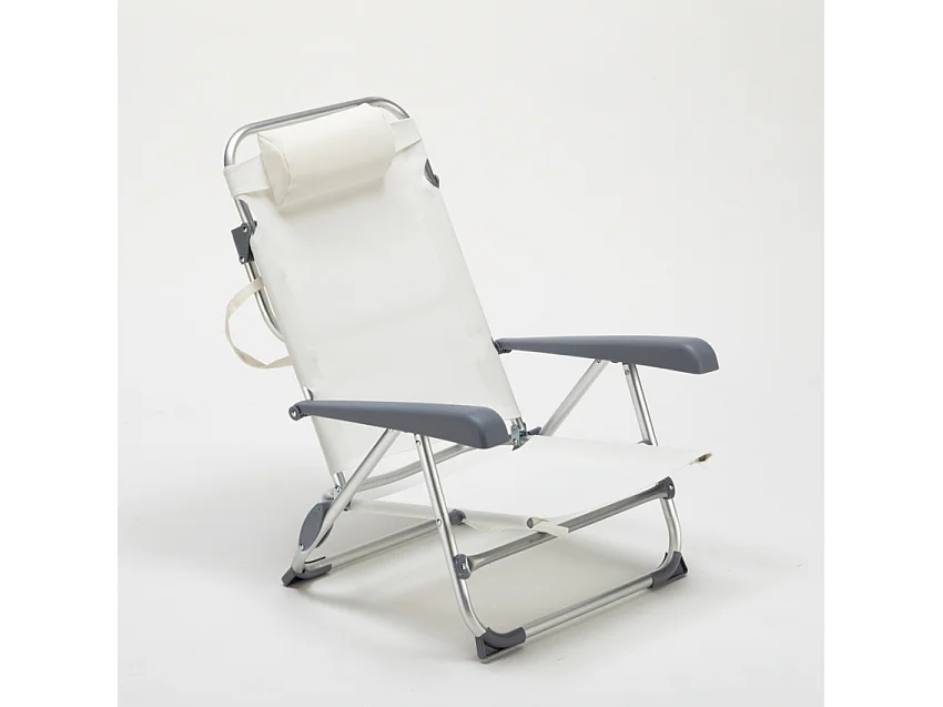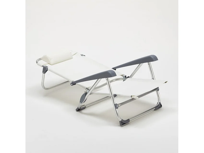 Liegestuhl Strandstuhl Klappbar mit Armlehne aus Aluminium für Strand Gargano - Weiß