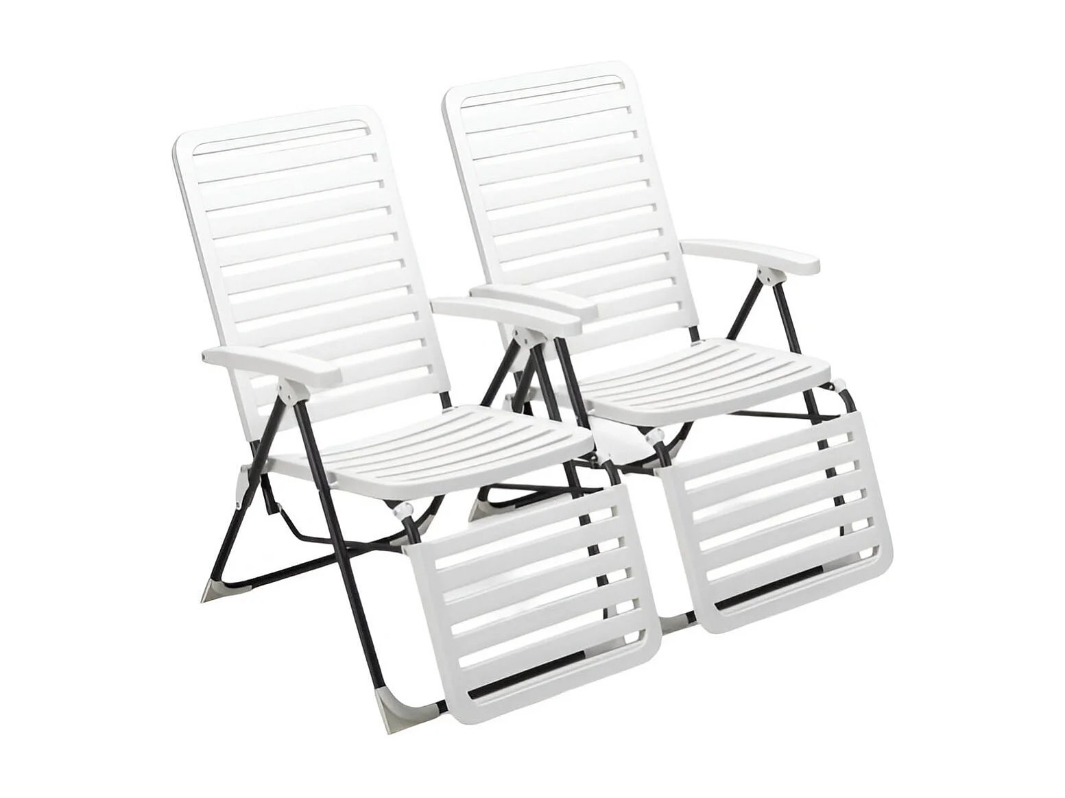 2er Terrassenliegestuhl mit Fußstütze Klappbarer Liegestuhl Weiß