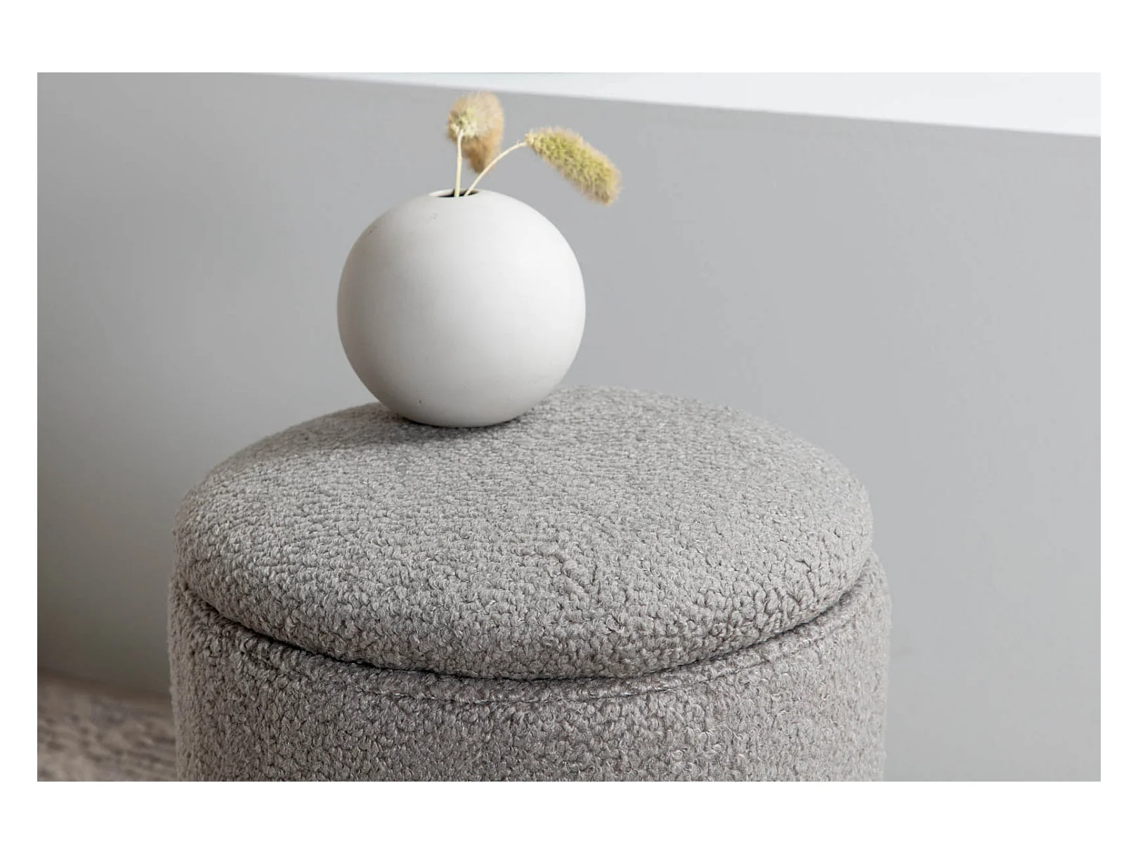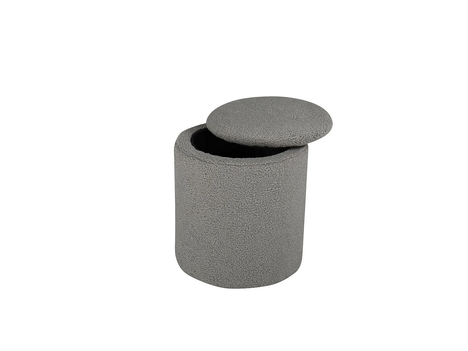 Limpen Pouf, Hocker mit Aufbewahrung Ø32cm Teddystoff grau.