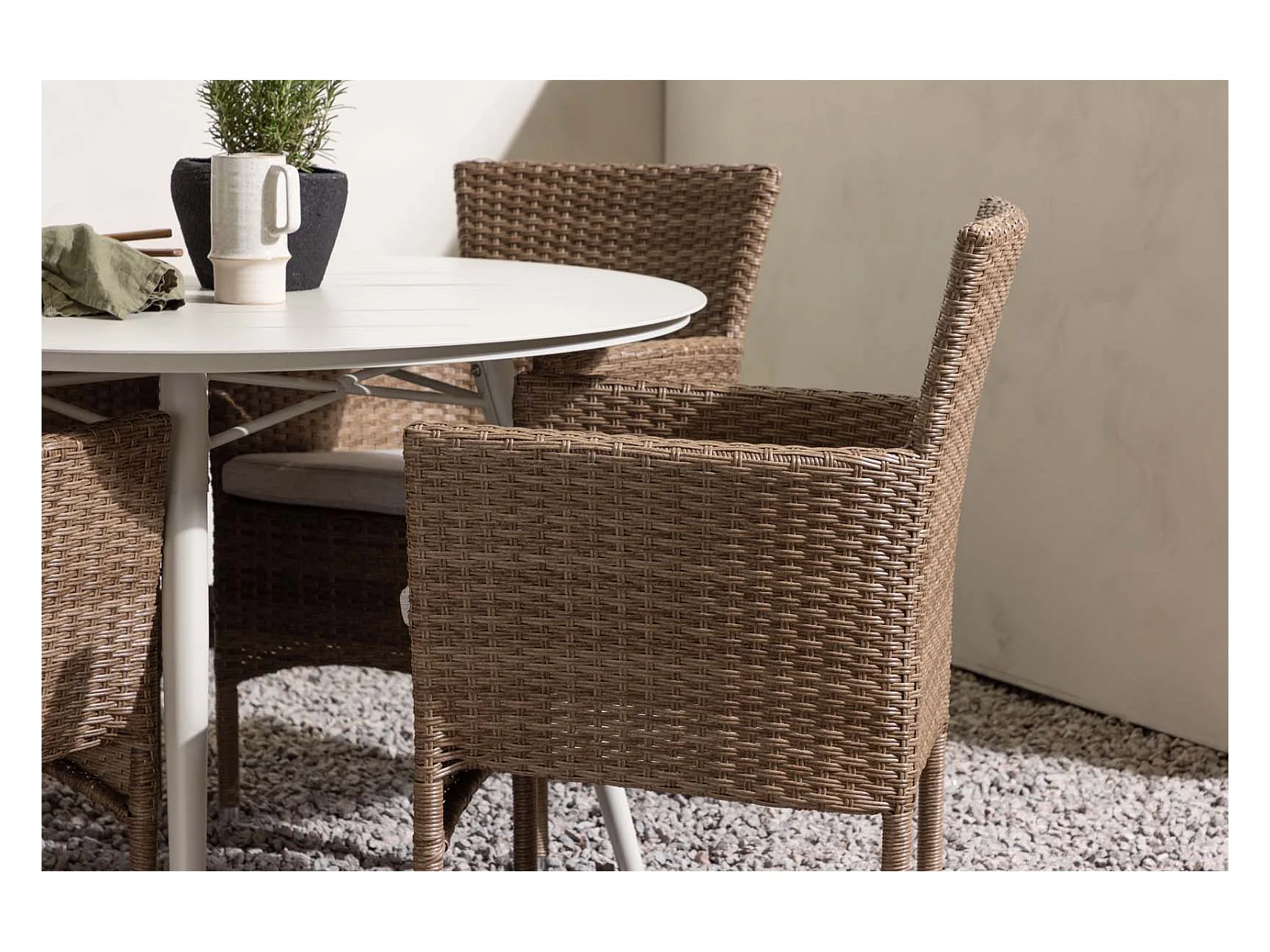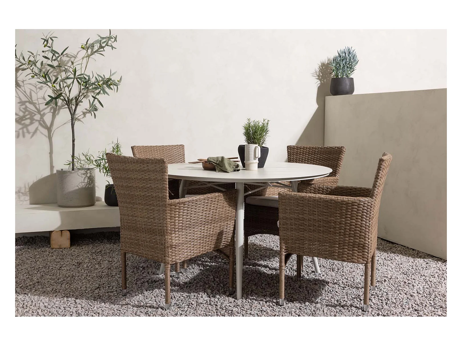 Lina Gartenset Tisch Ø120cm beige, 4 Stühle Malina natur.