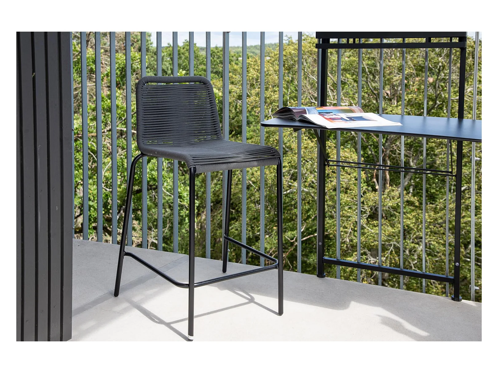 Lindos Garten Barhocker stapelbar dunkel grau.