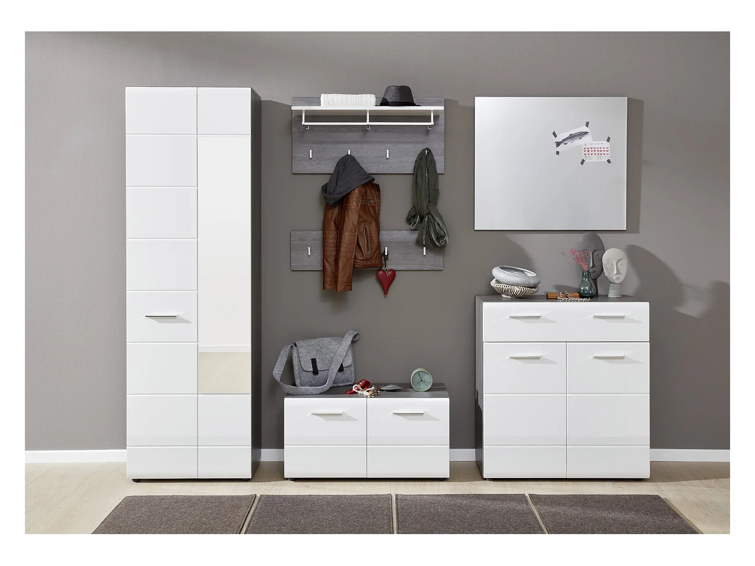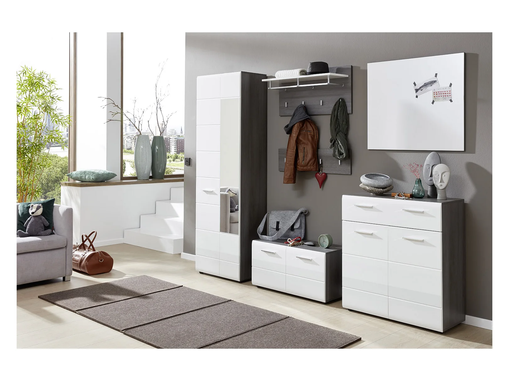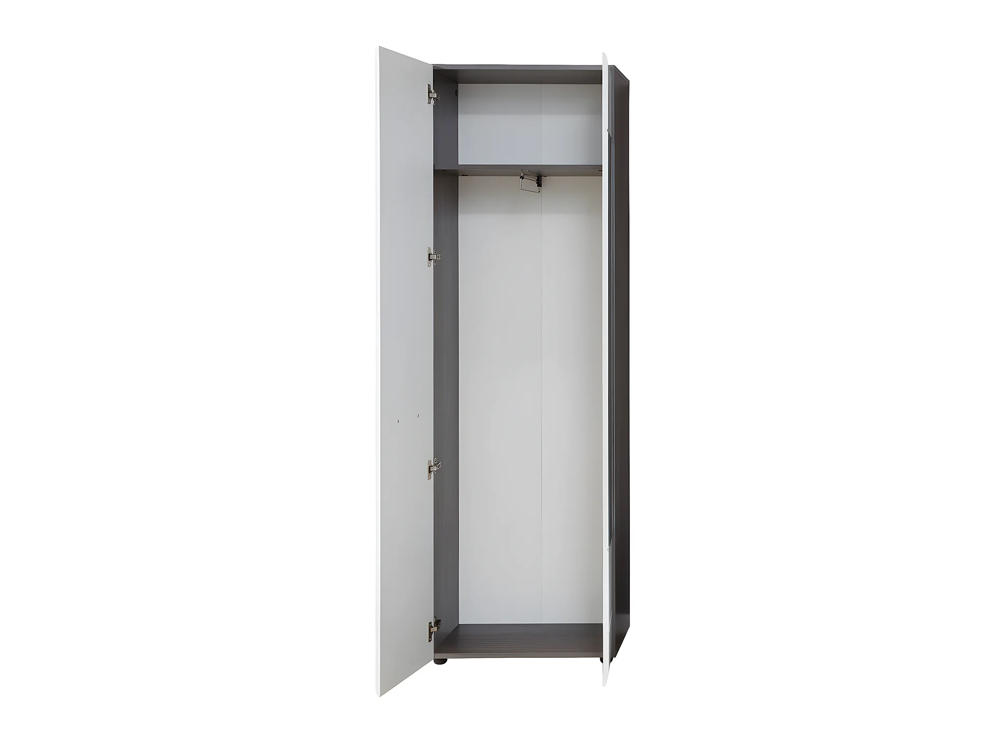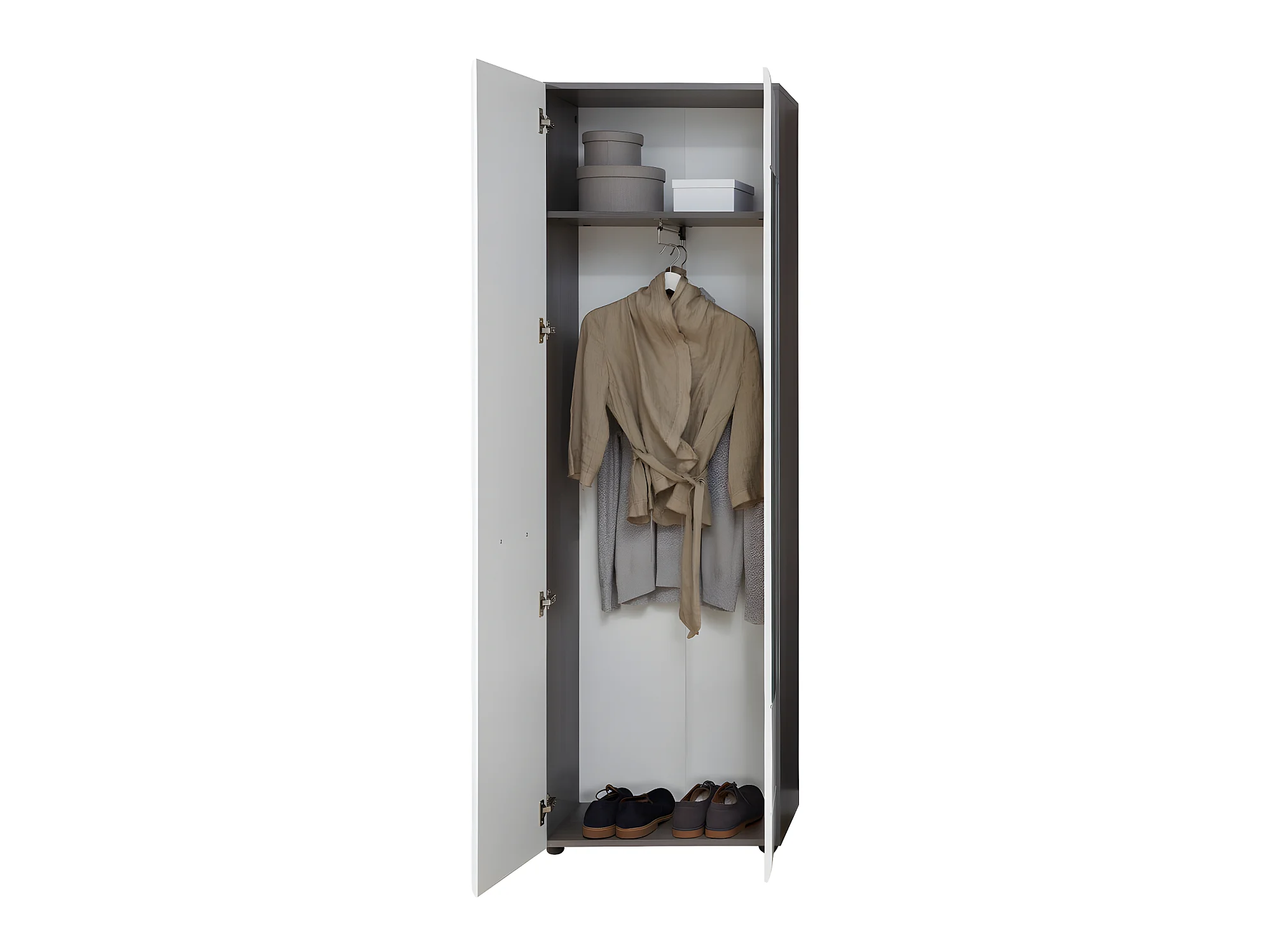 LineGD Garderobenschrank 2 Türen rauchsilber, weiß Hochglanz.