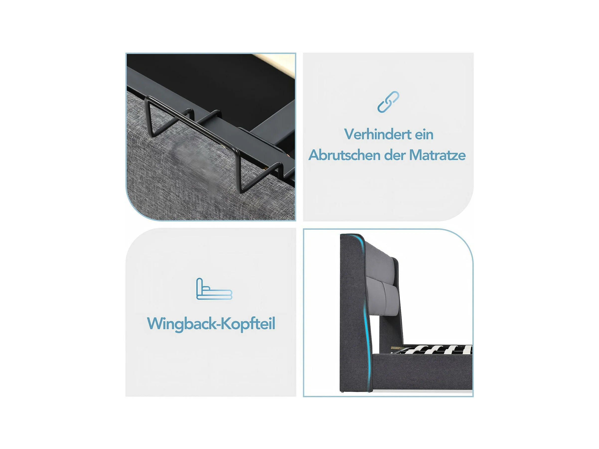 Linn Brustbett mit Matratzen, lattesboxfeder und einstellbare Kopfstütze, 160 x 200 cm, grau