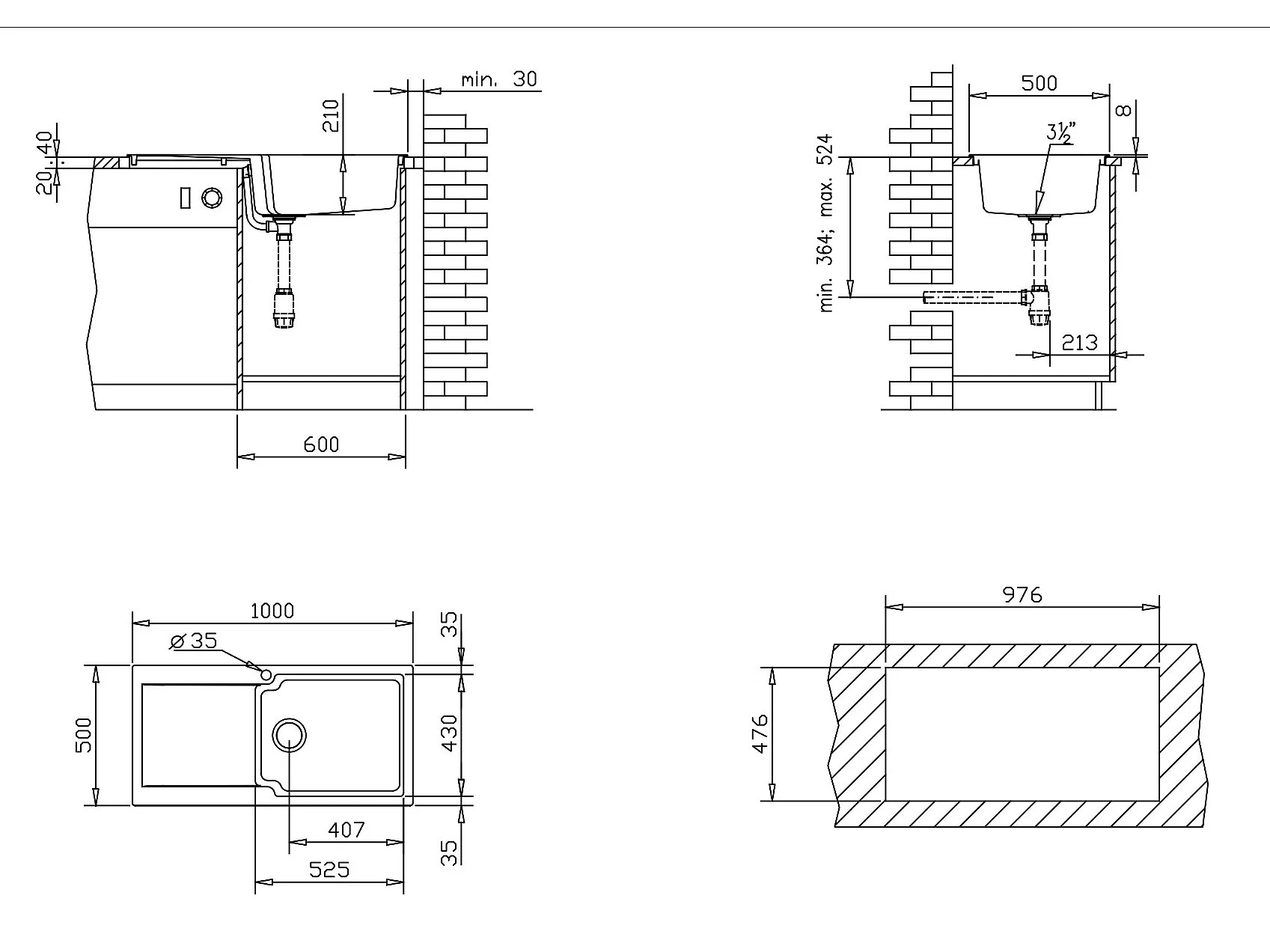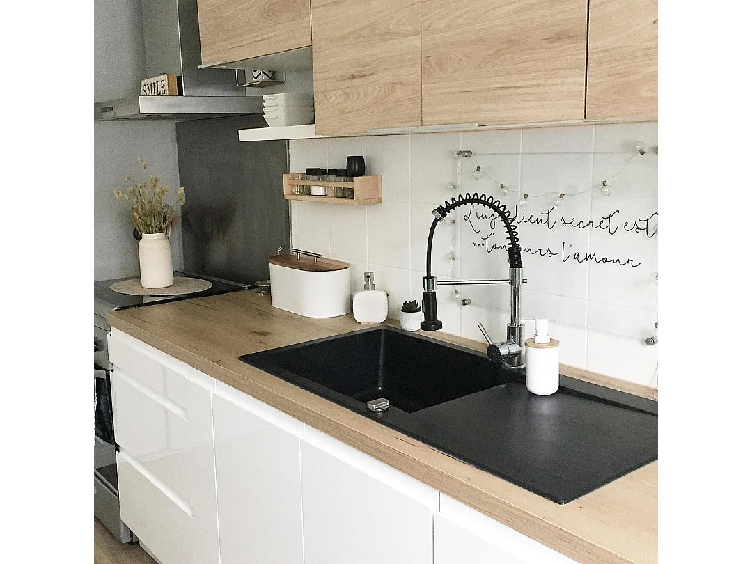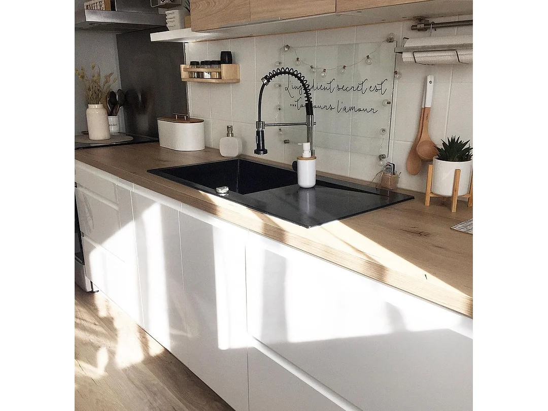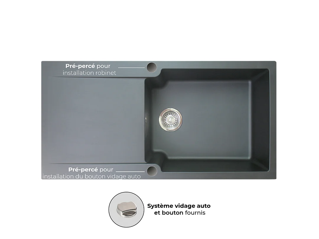 Lisse umkehrbare Spüle 1 großes Becken 1 Abtropfbecken aus schwarzes Harz Essebagno
