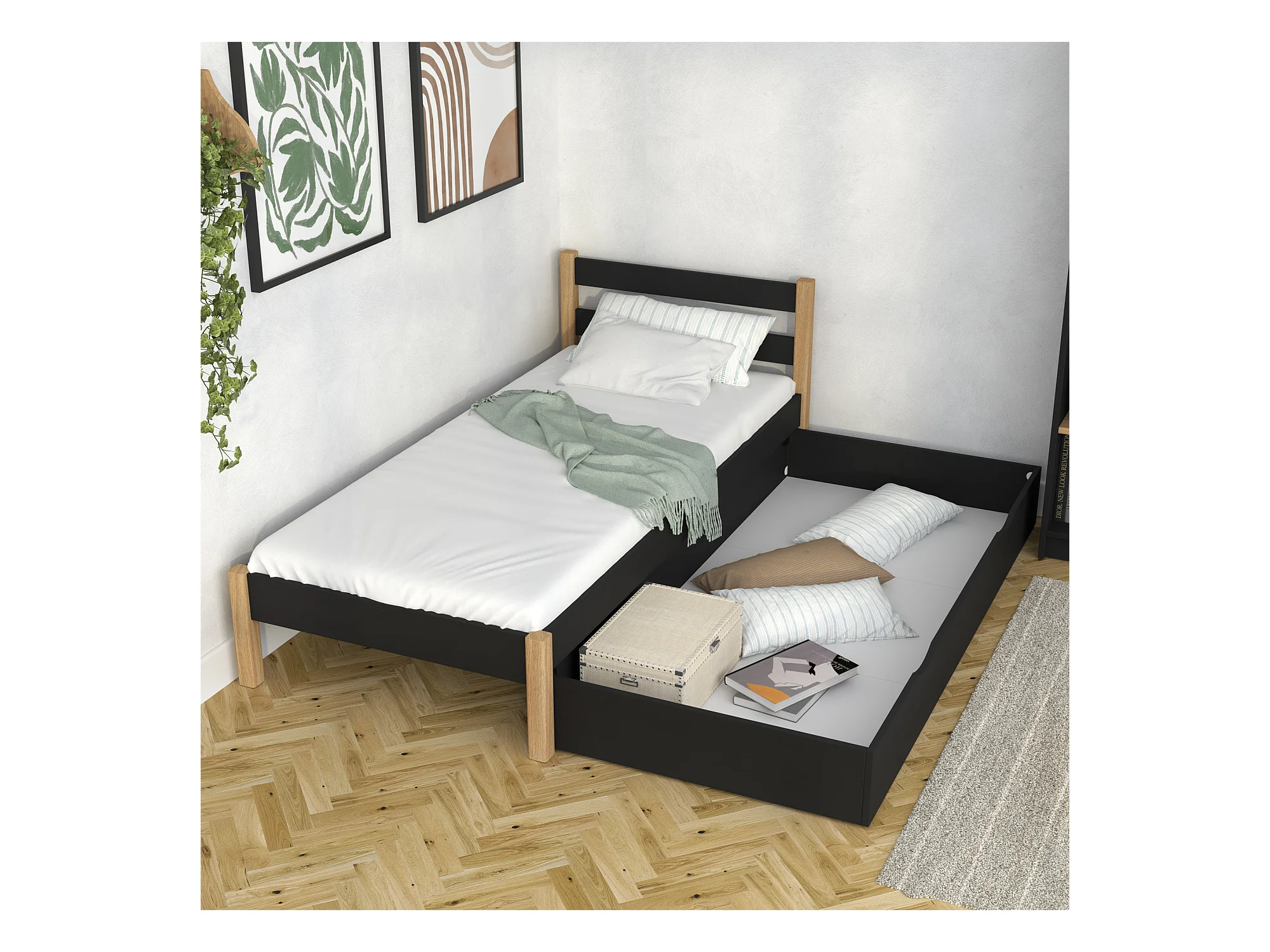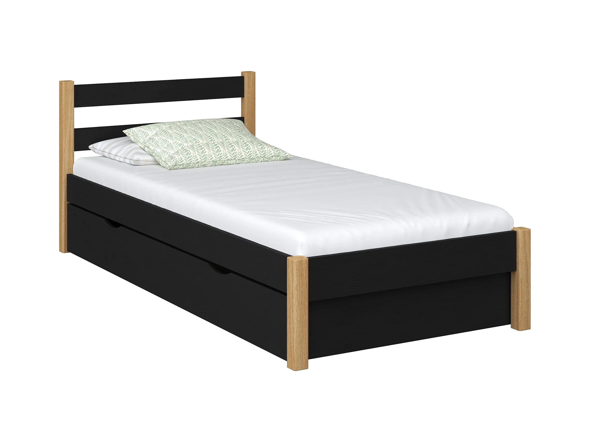BETT mit Schublade N01 Schwarz / Eiche Natur 90x200