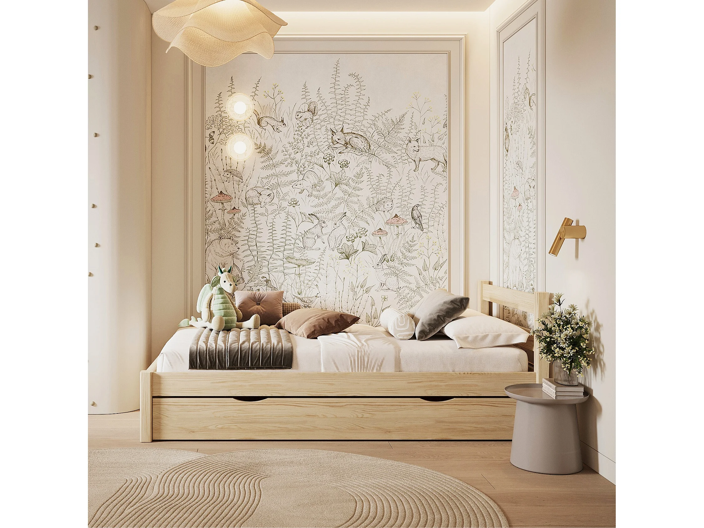 BETT mit Schublade N01 Klare Kiefer 90x200