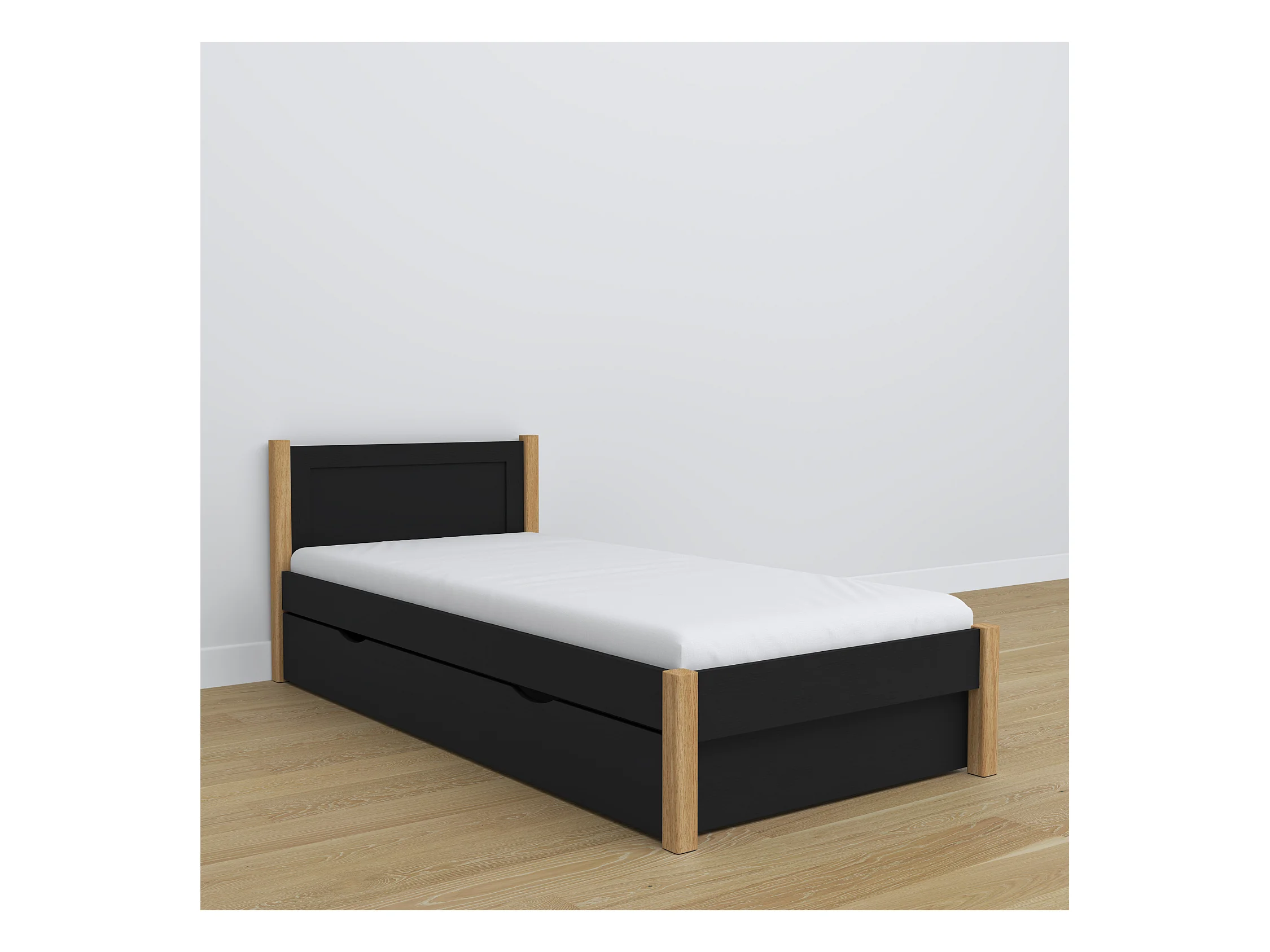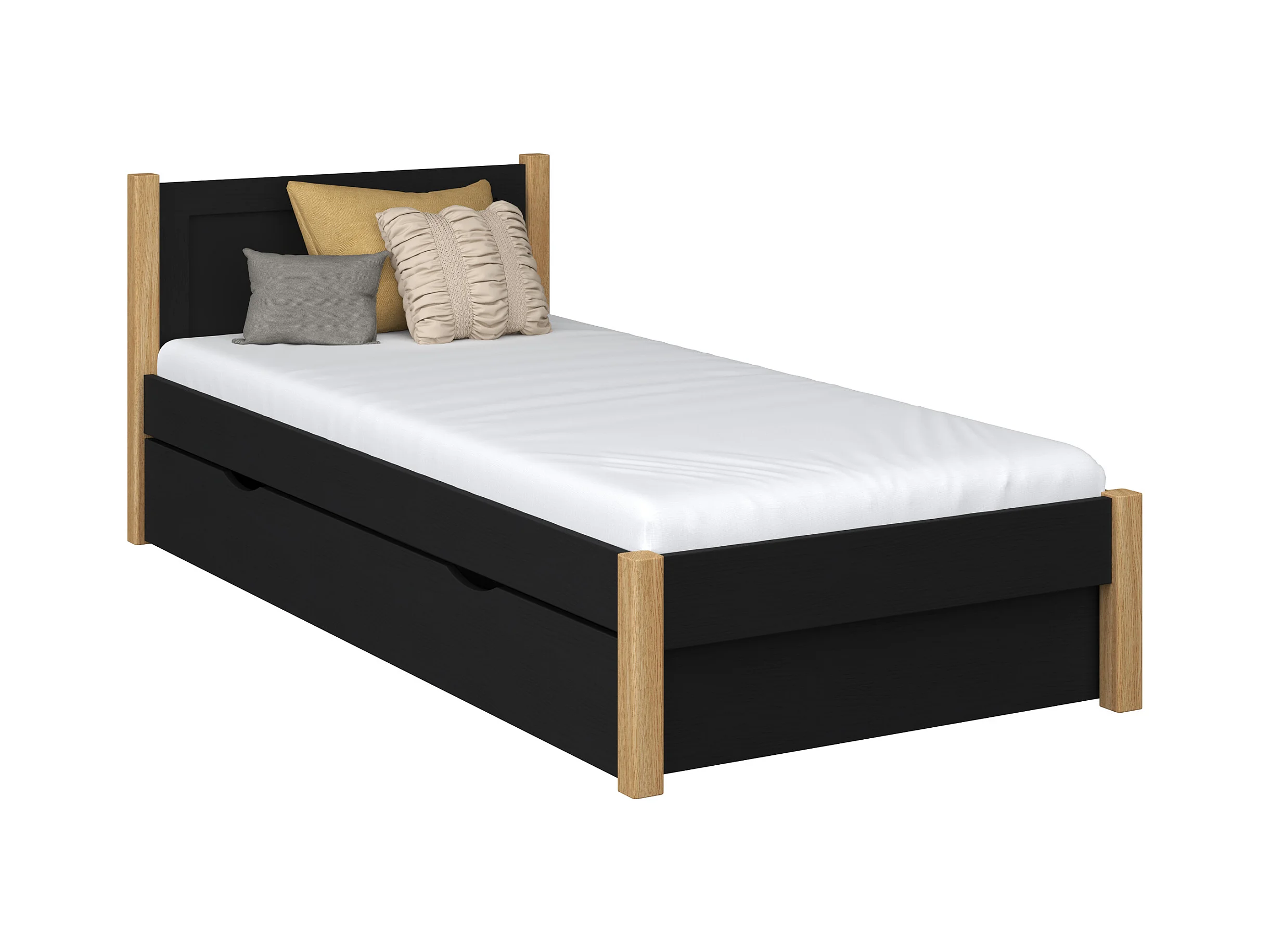 BETT mit Schublade N02 Schwarz / Eiche Natur 100x190
