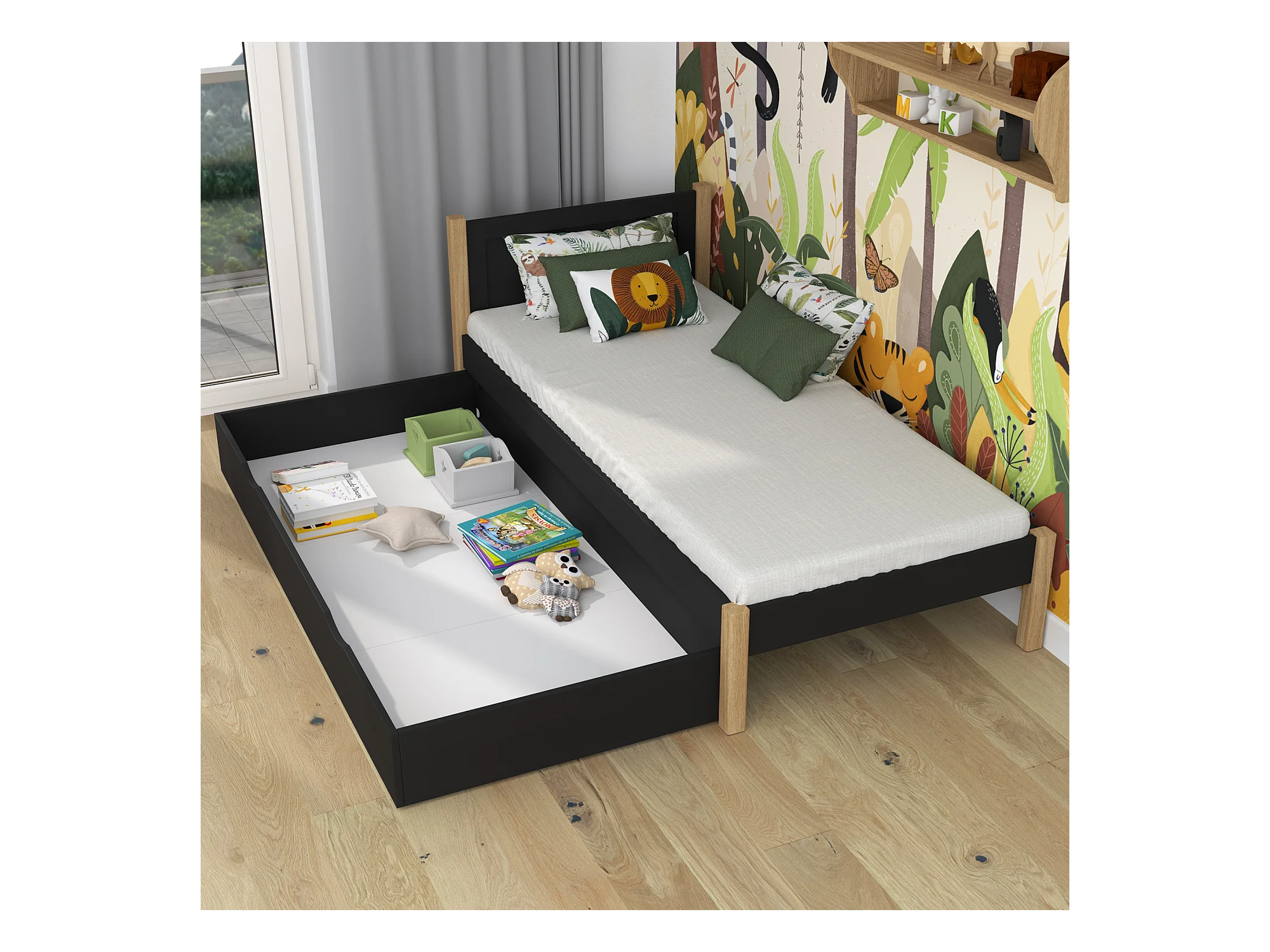 BETT mit Schublade N02 Schwarz / Eiche Natur 80x200
