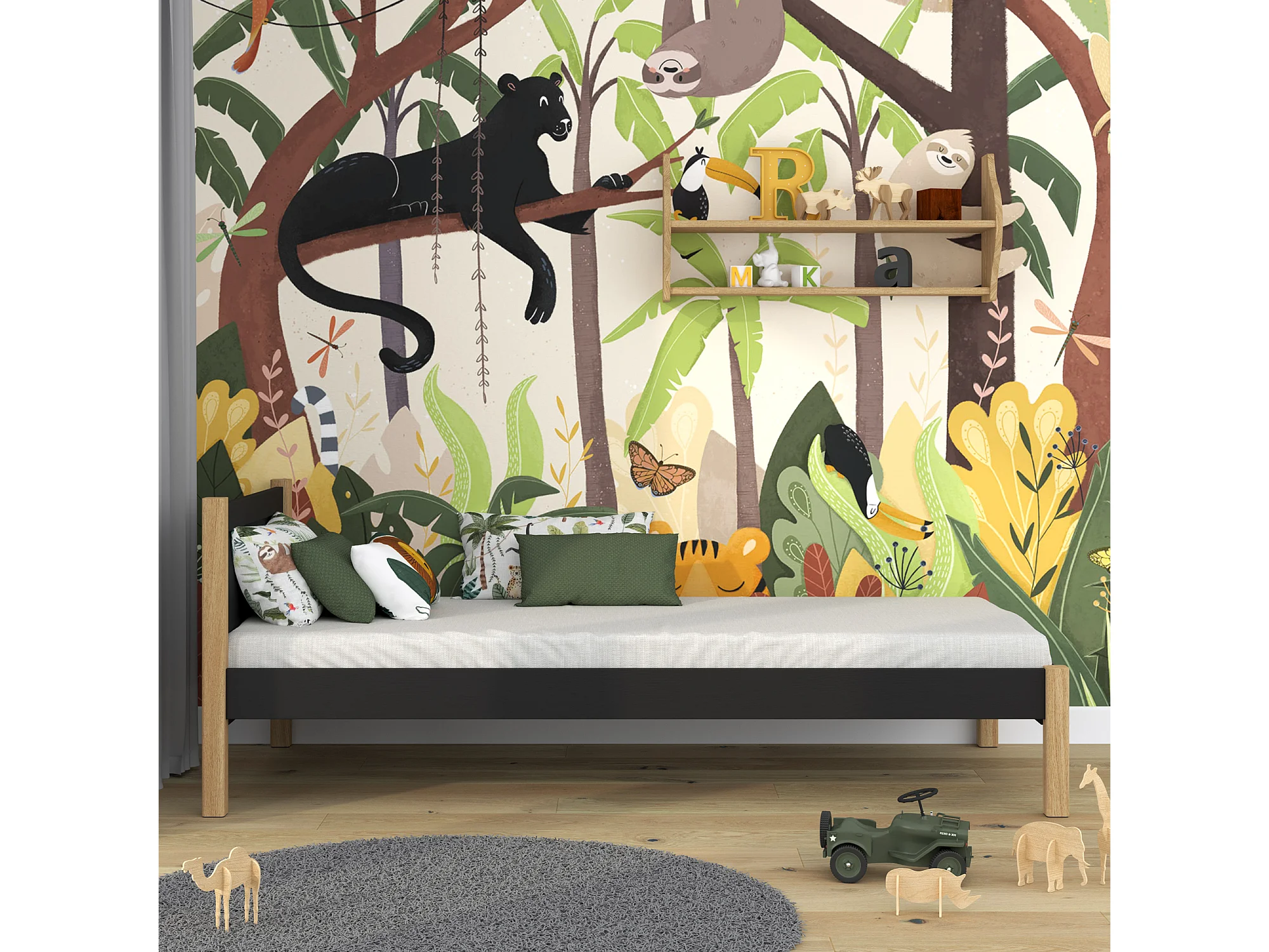 BETT N02 Schwarz / Eiche Natur 120x190