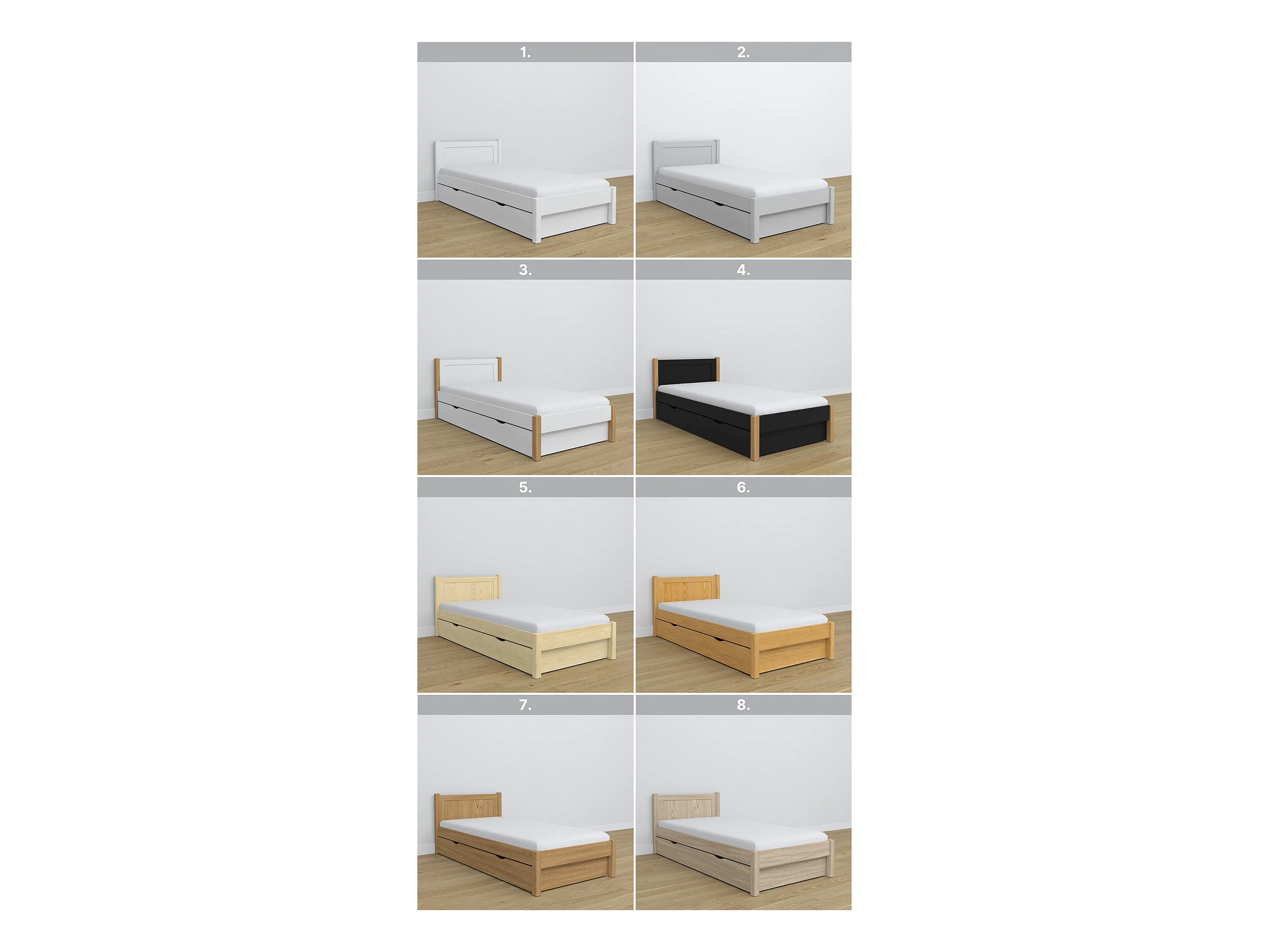 BETT mit Schublade N02 Eiche Natur 80x180