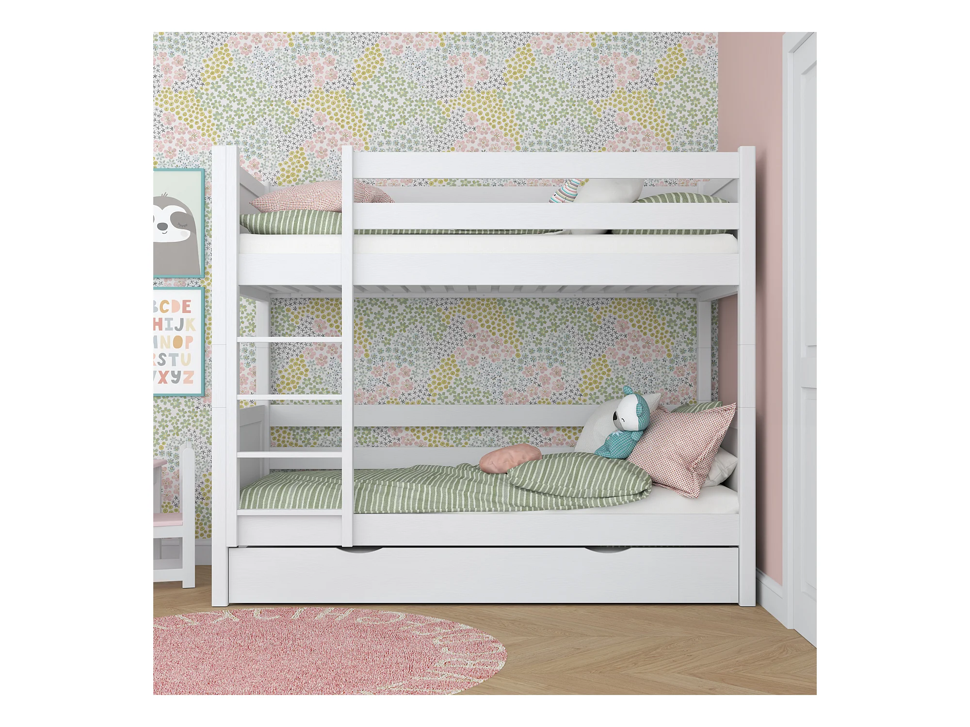 ETAGENBETT N02 mit Schublade Weiß 90x180
