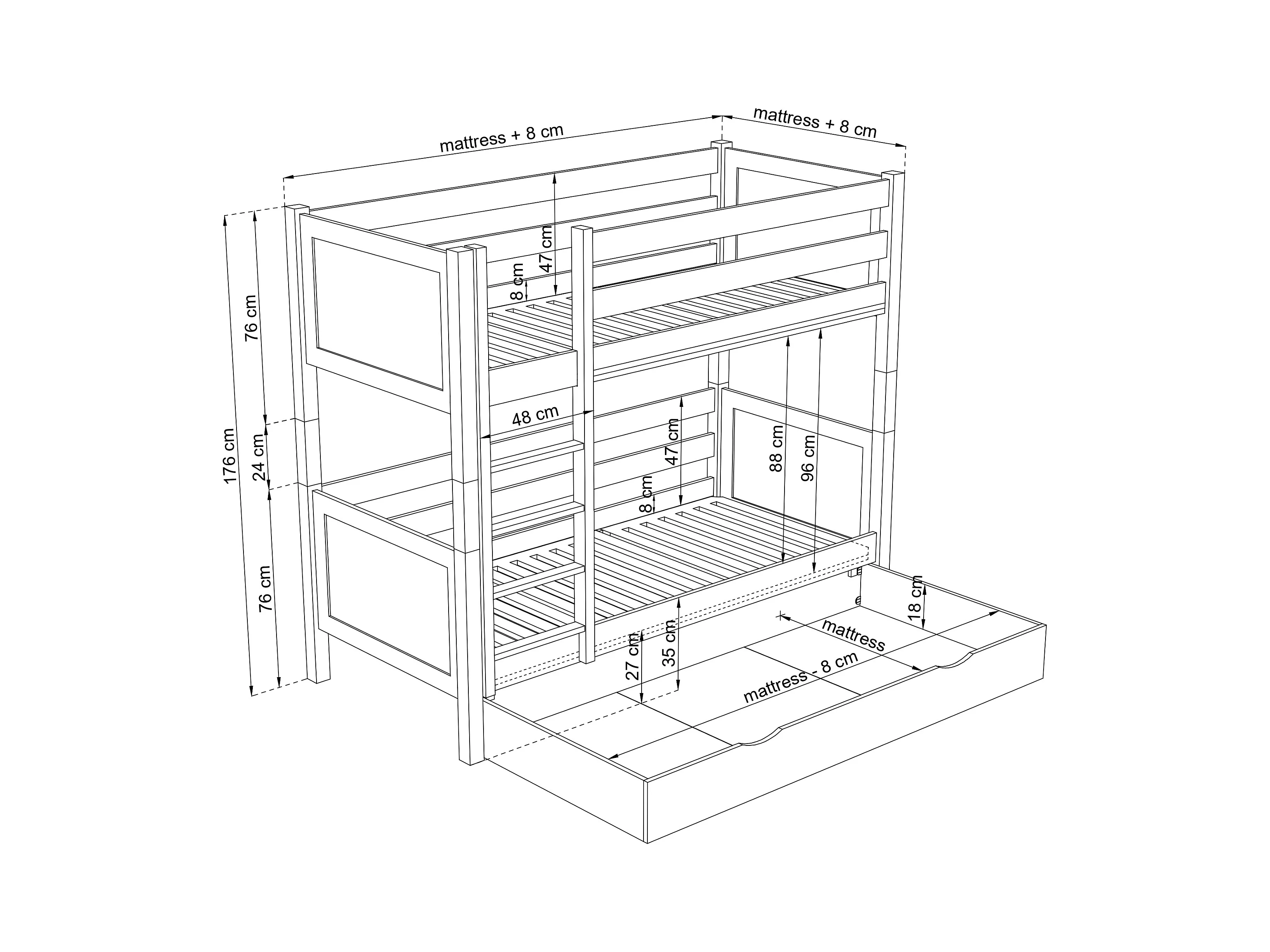 ETAGENBETT N02 mit Schublade Weiß / Eiche Natur 120x180