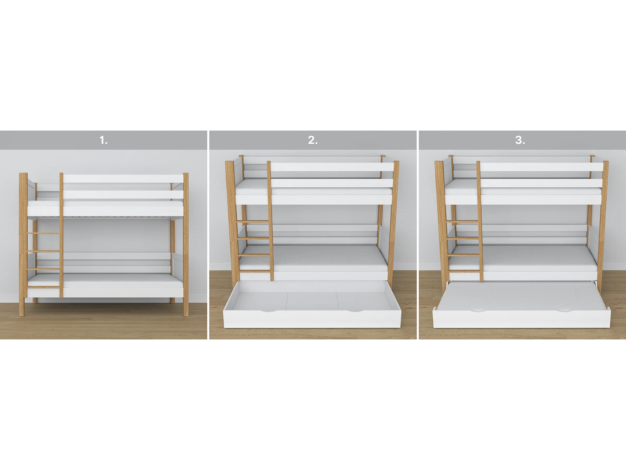 ETAGENBETT N02 mit Schublade Weiß / Eiche Natur 90x180