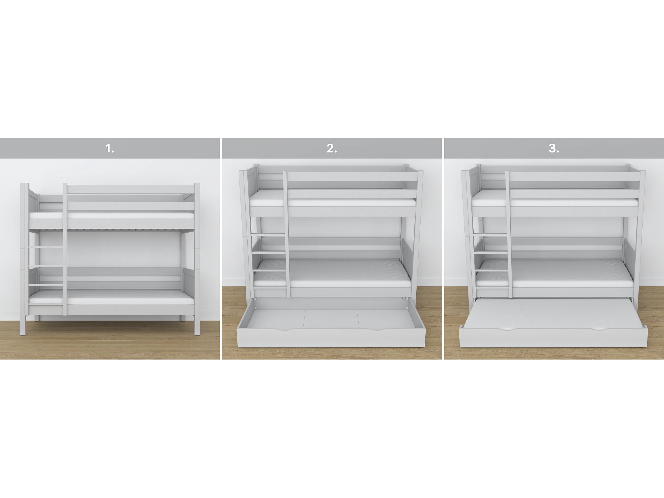 ETAGENBETT N02 mit Schublade Grau 100x200