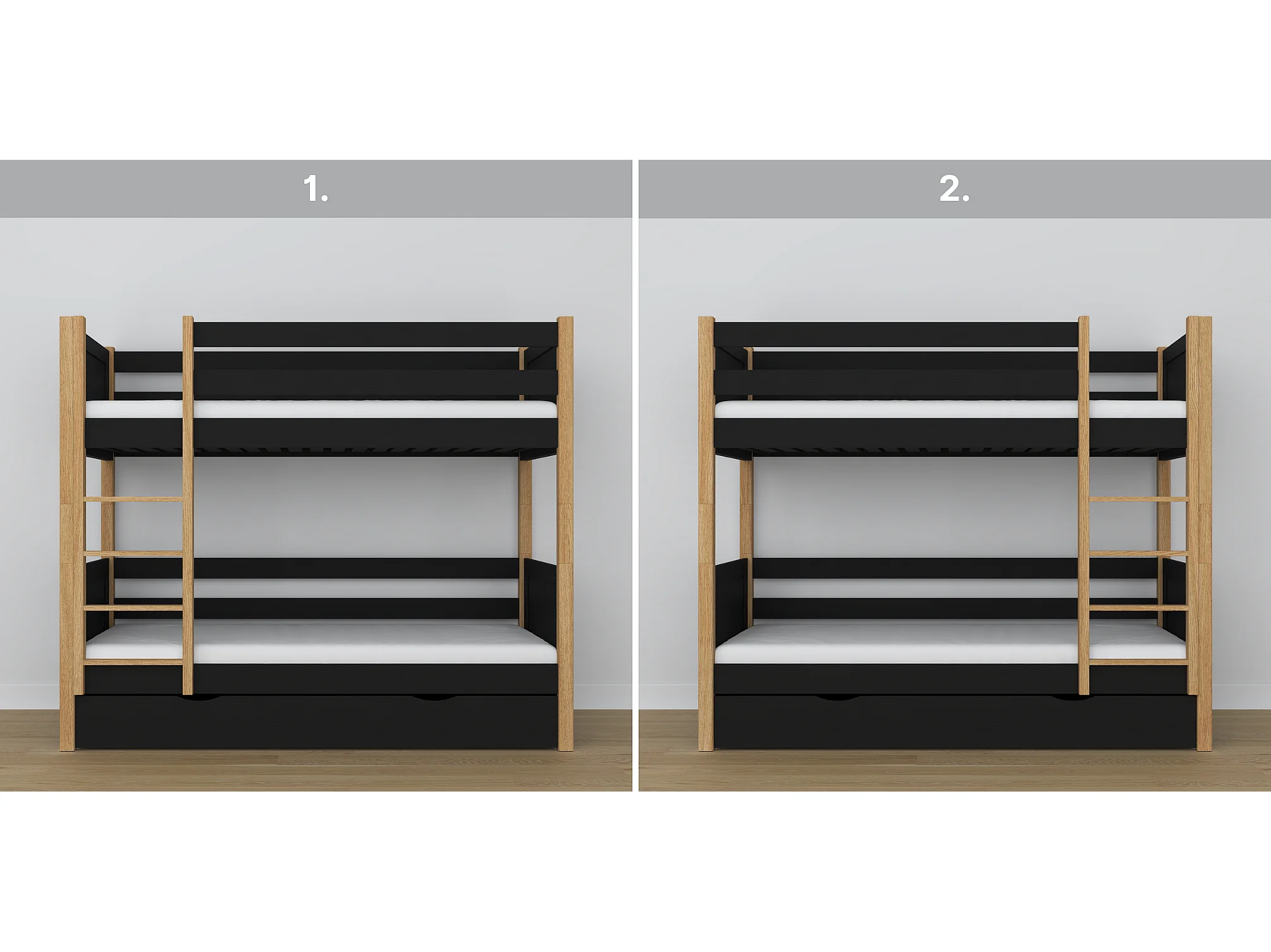 ETAGENBETT N02 mit Schublade Schwarz / Eiche Natur 90x180