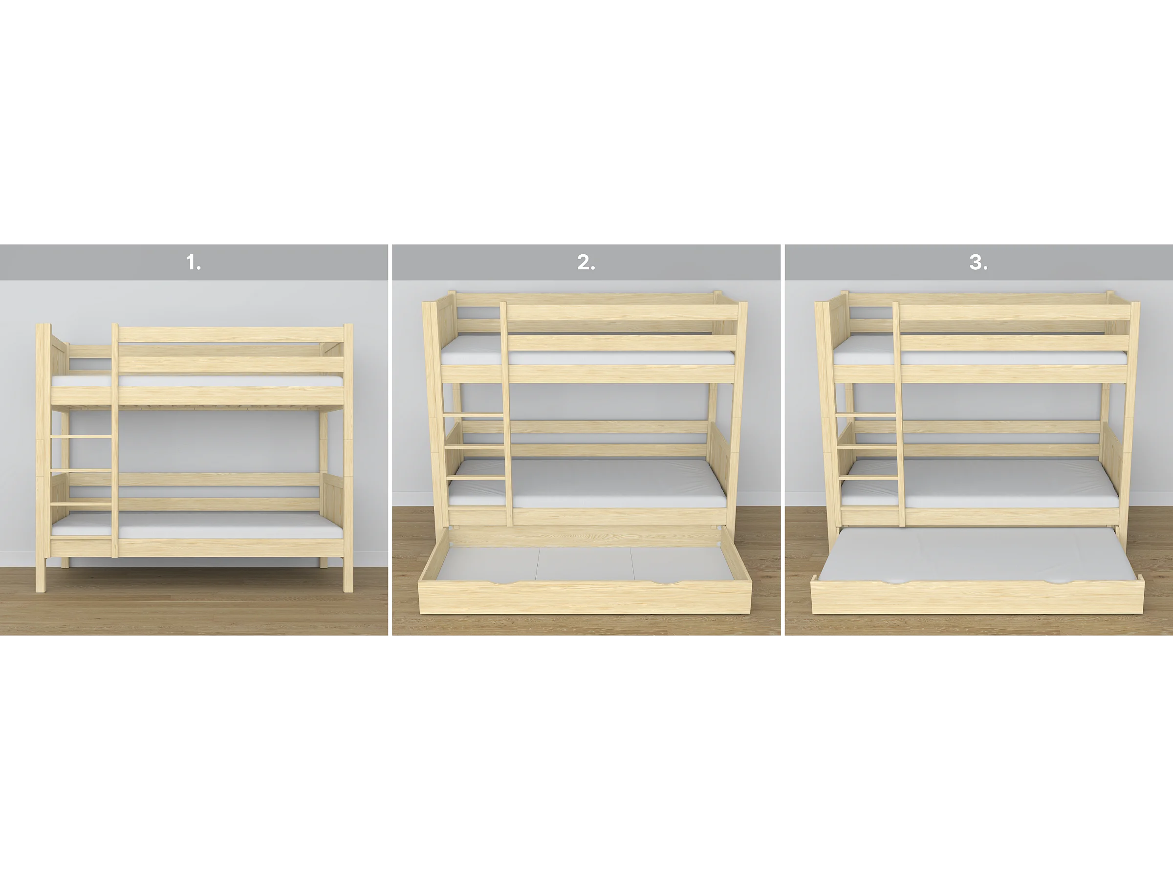 ETAGENBETT N02 mit Schublade Klare Kiefer 120x180