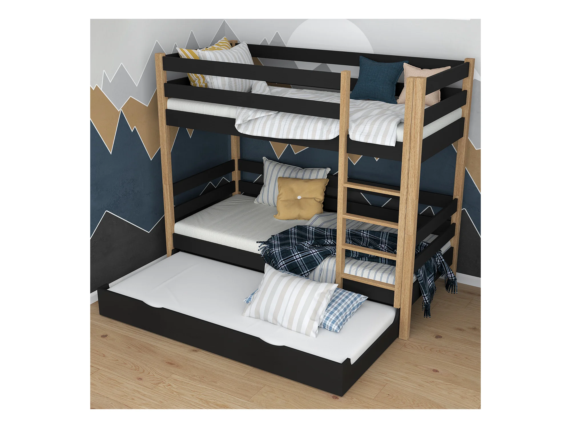 ETAGENBETT N01 mit Matratzenschublade Schwarz / Eiche Natur 120x180