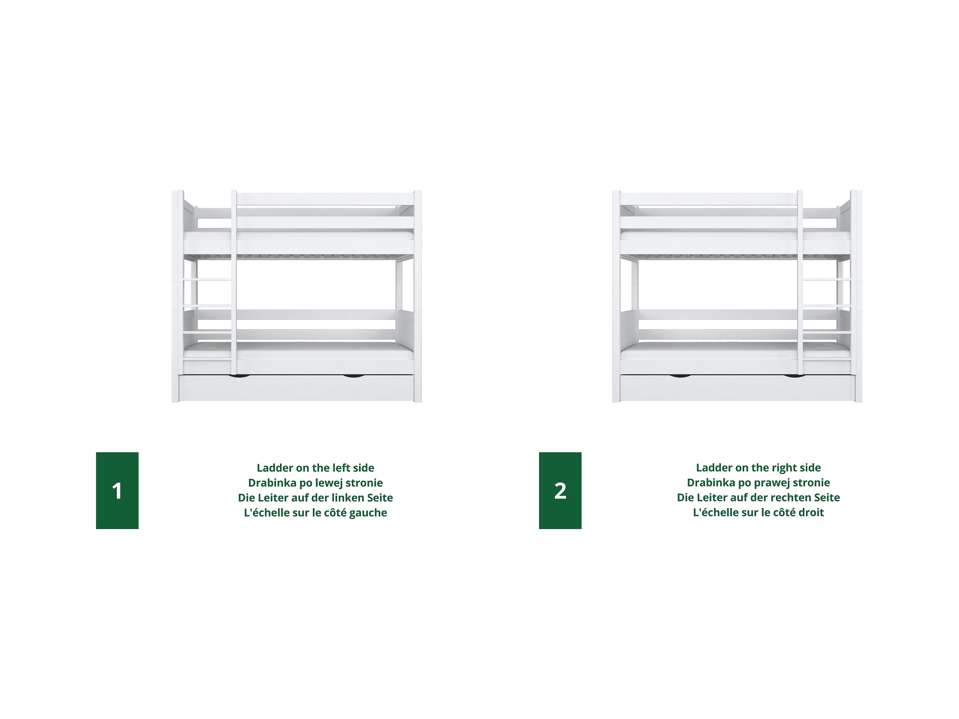 ETAGENBETT N02 mit Matratzenschublade Weiß 100x180