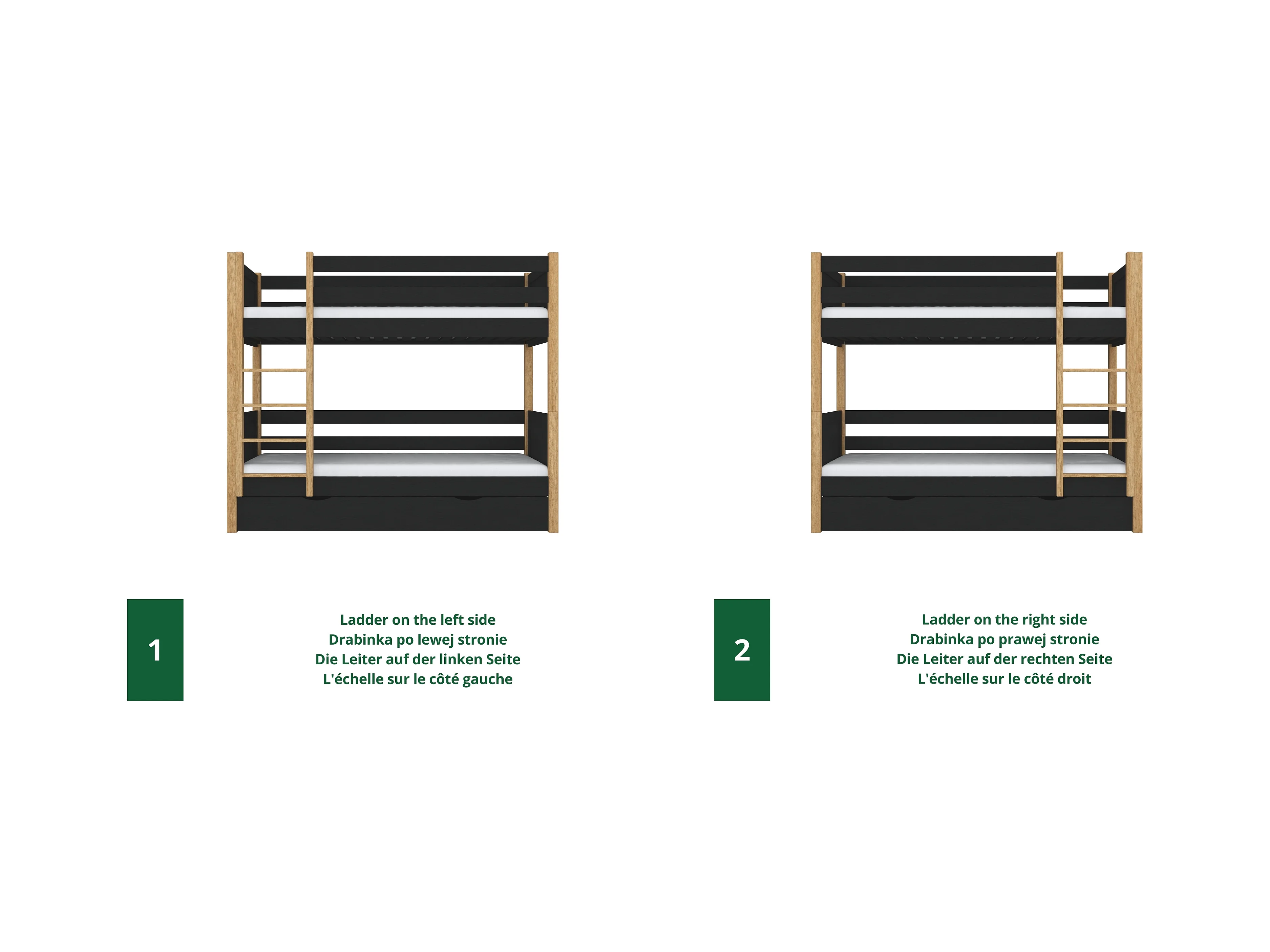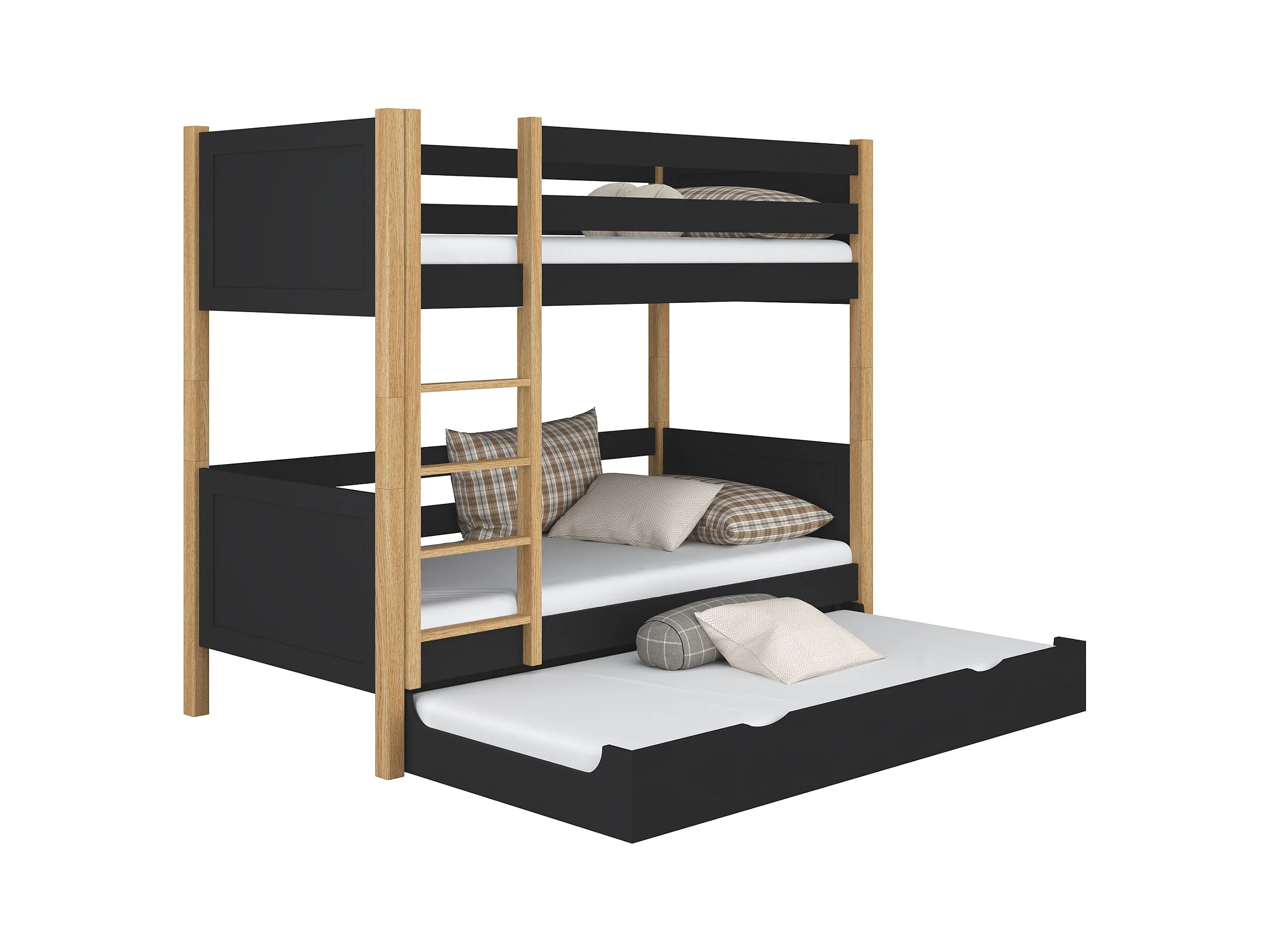 ETAGENBETT N02 mit Matratzenschublade Schwarz / Eiche Natur 100x190