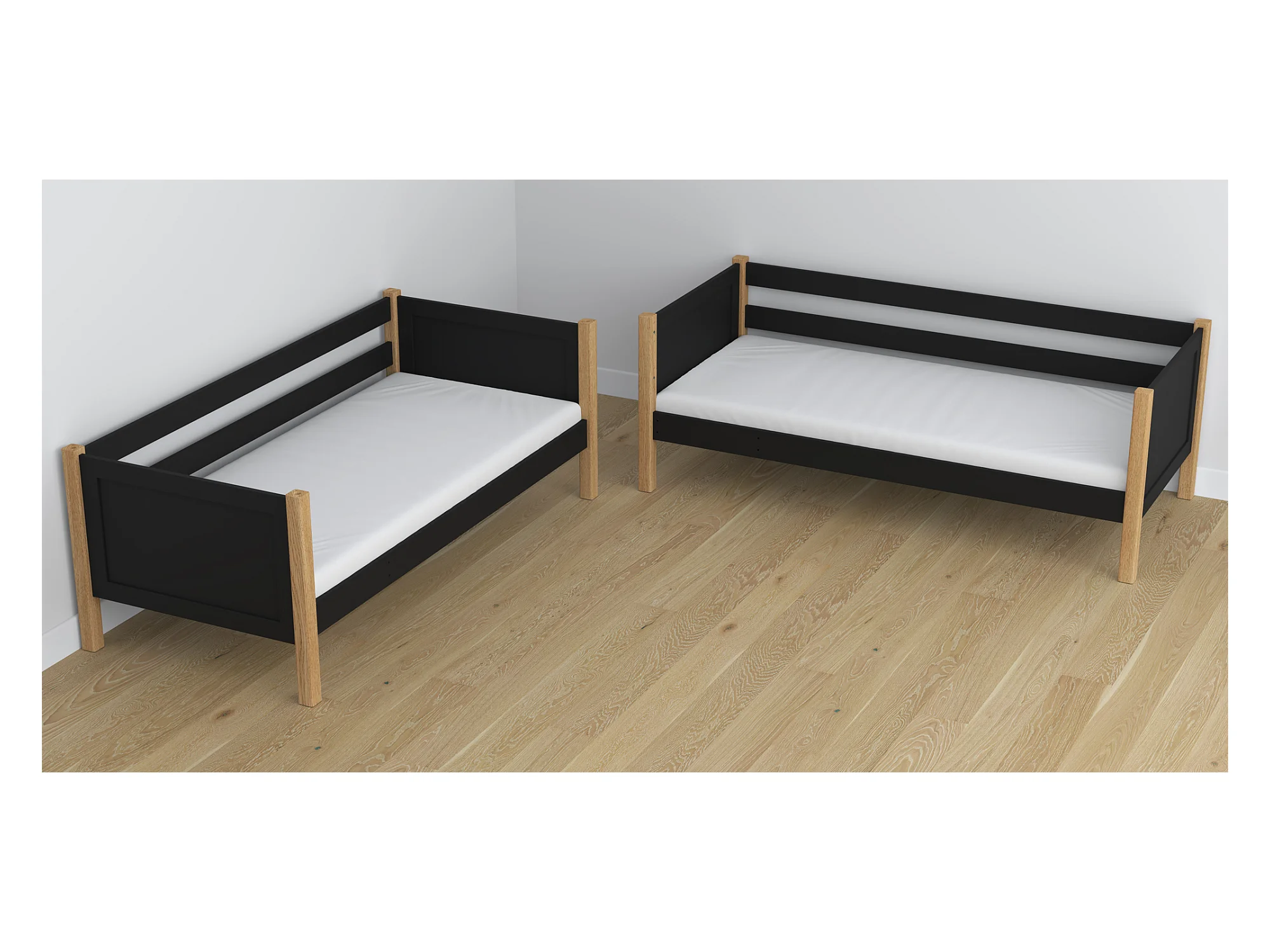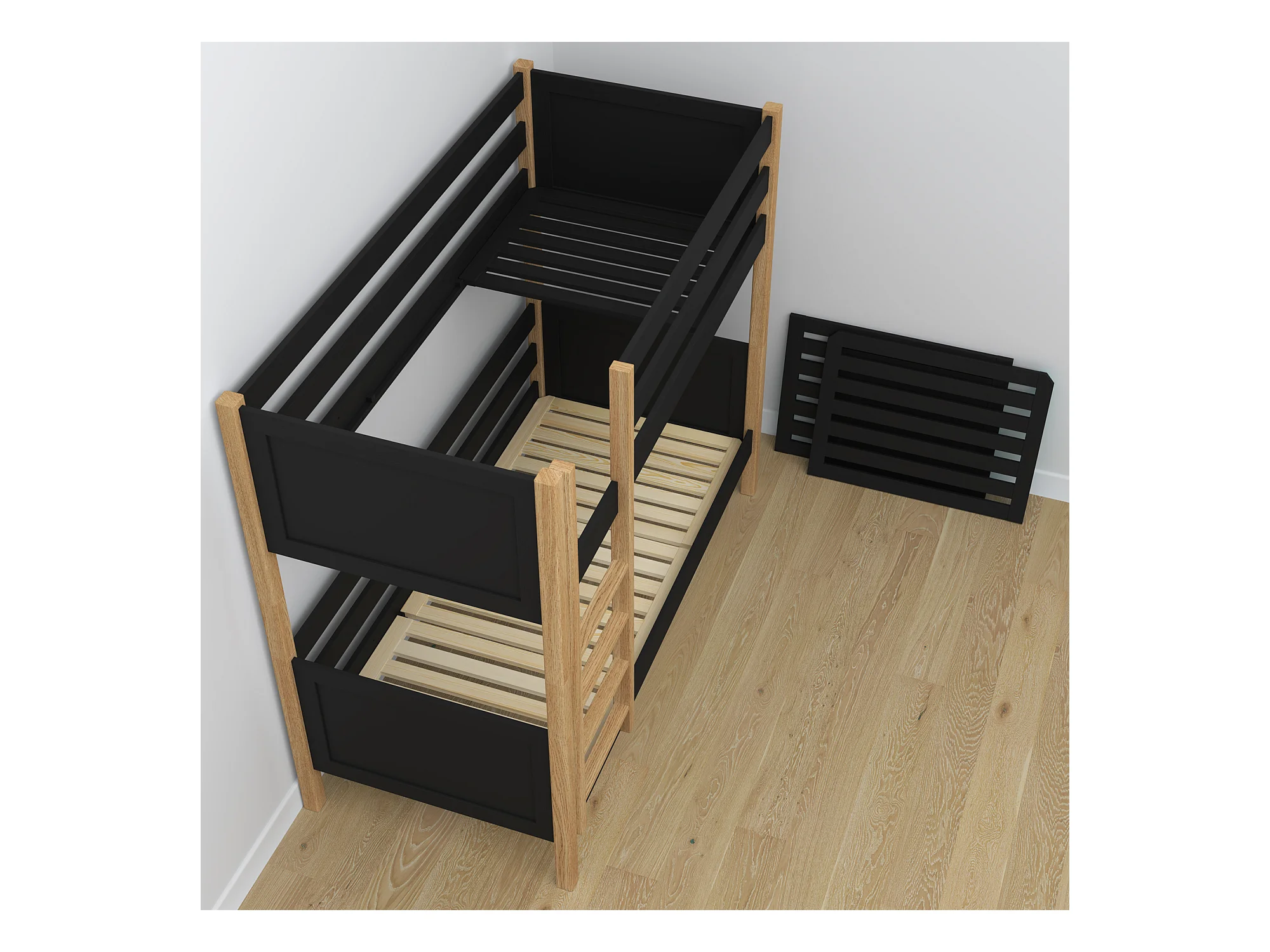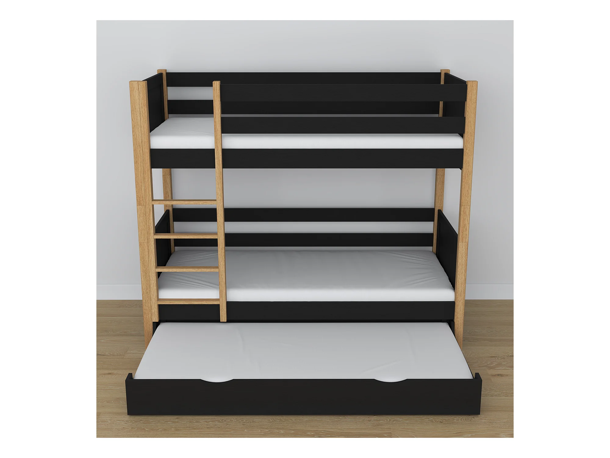 ETAGENBETT N02 mit Matratzenschublade Schwarz / Eiche Natur 80x190