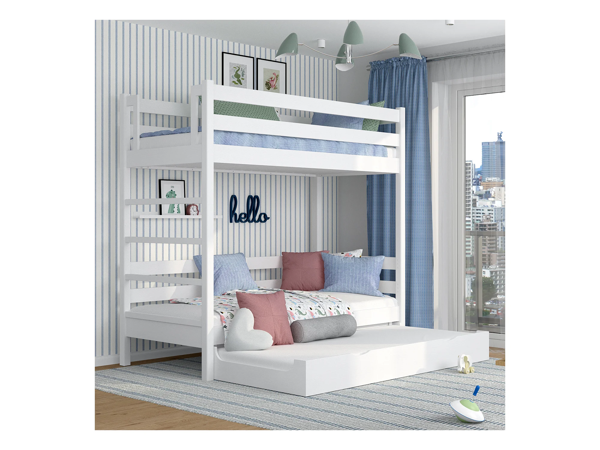 ETAGENBETT N03 mit Matratzenschublade Weiß 120x190