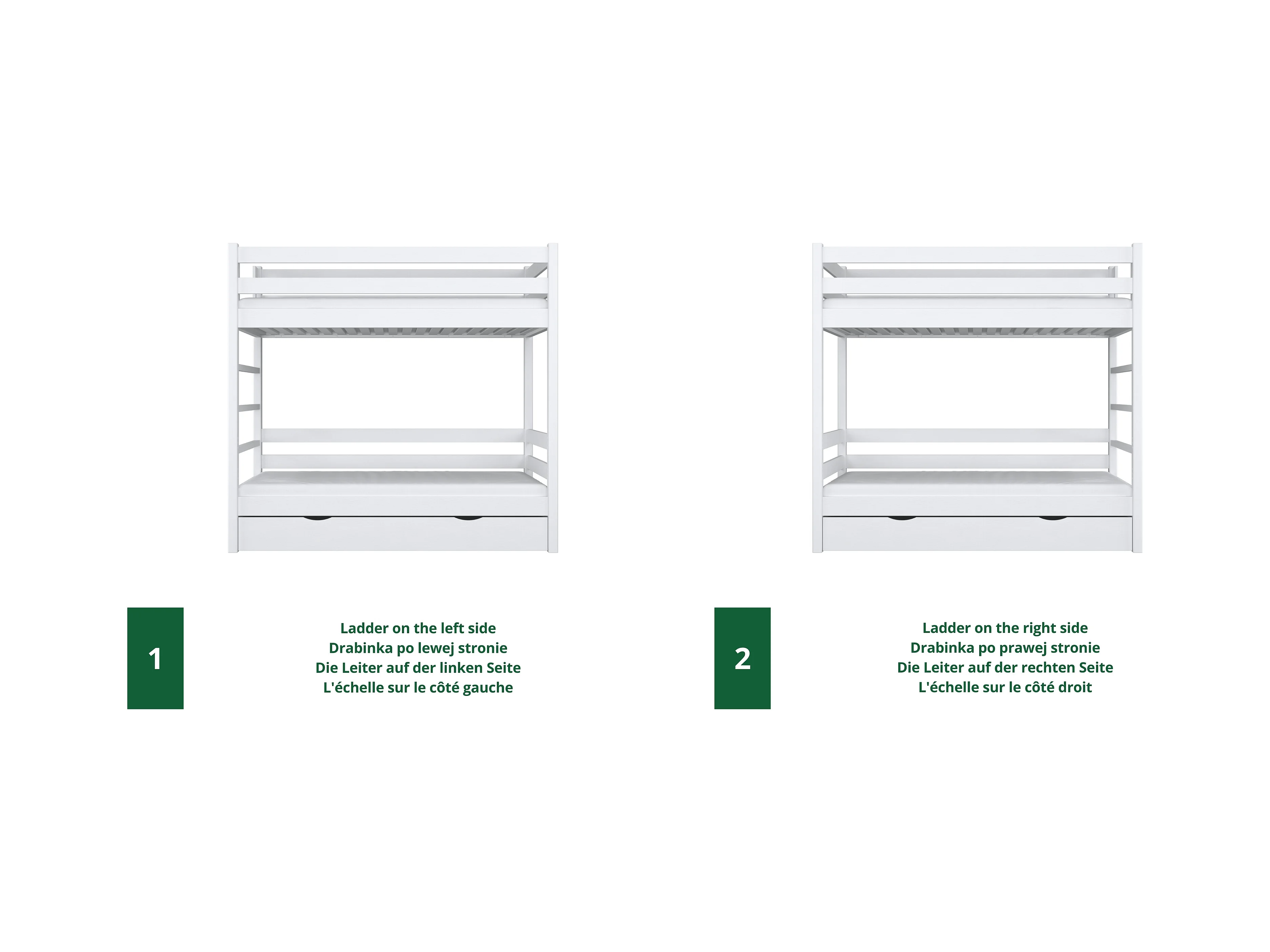 ETAGENBETT N03 mit Matratzenschublade Weiß 90x180