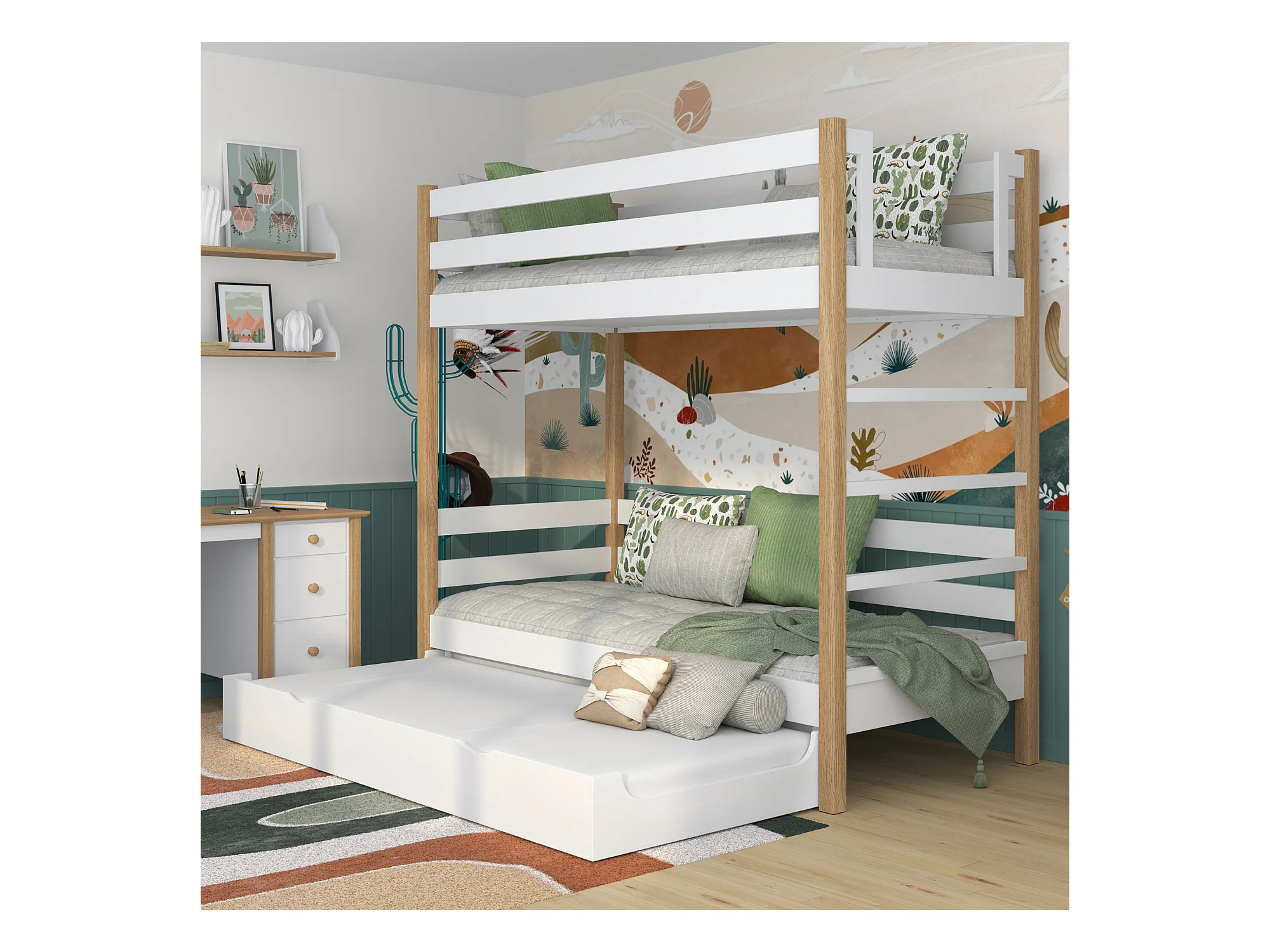 ETAGENBETT N03 mit Matratzenschublade Weiß / Eiche Natur 100x180