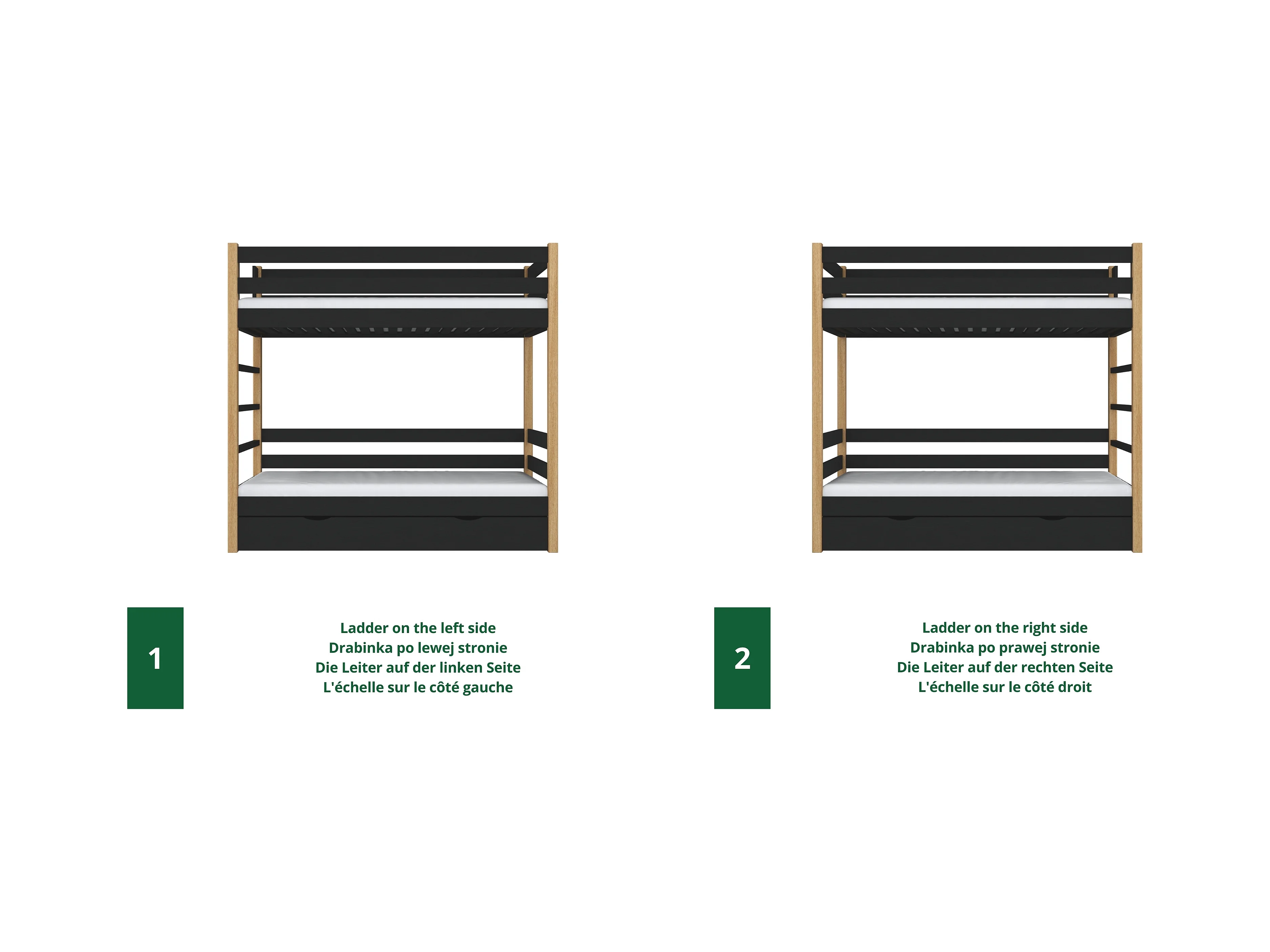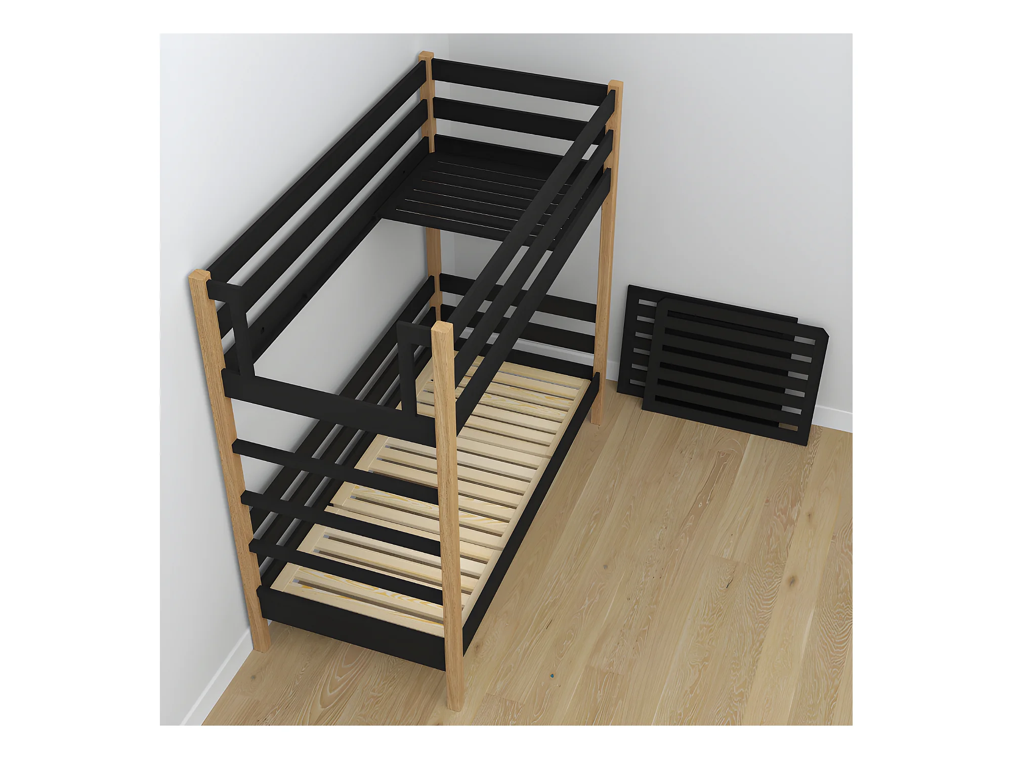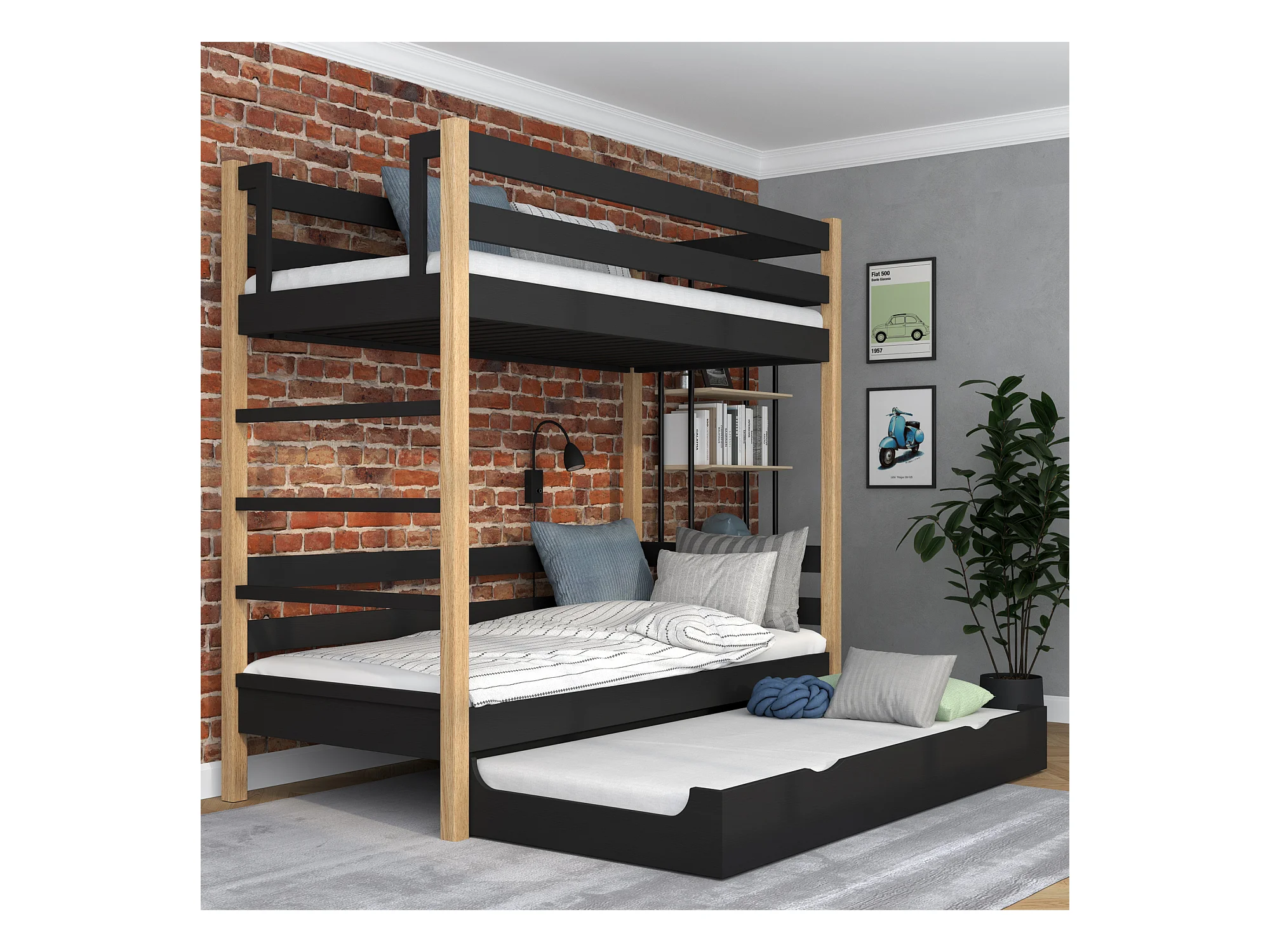 ETAGENBETT N03 mit Matratzenschublade Schwarz / Eiche Natur 90x200