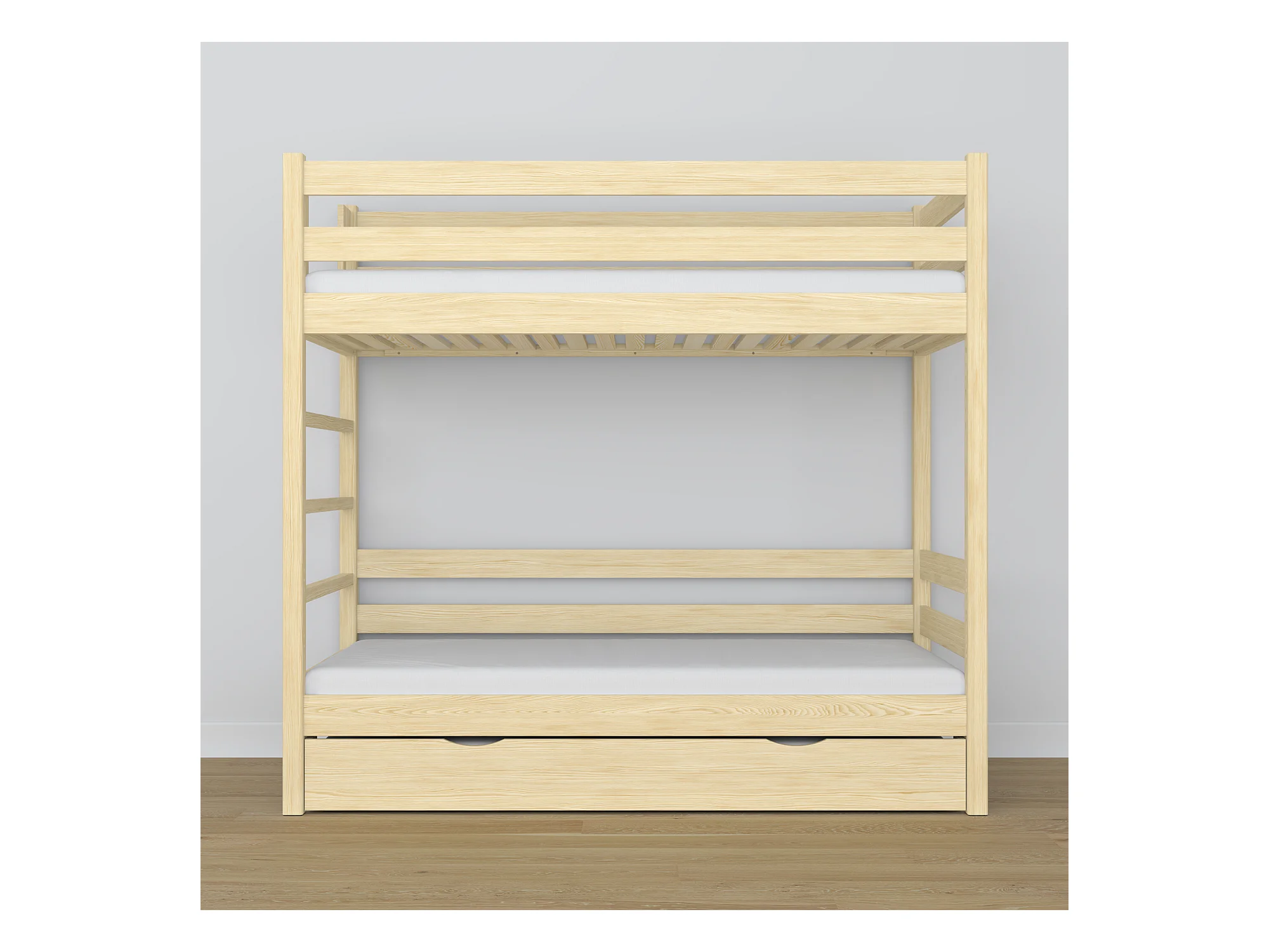 ETAGENBETT N03 mit Matratzenschublade Klare Kiefer 80x190