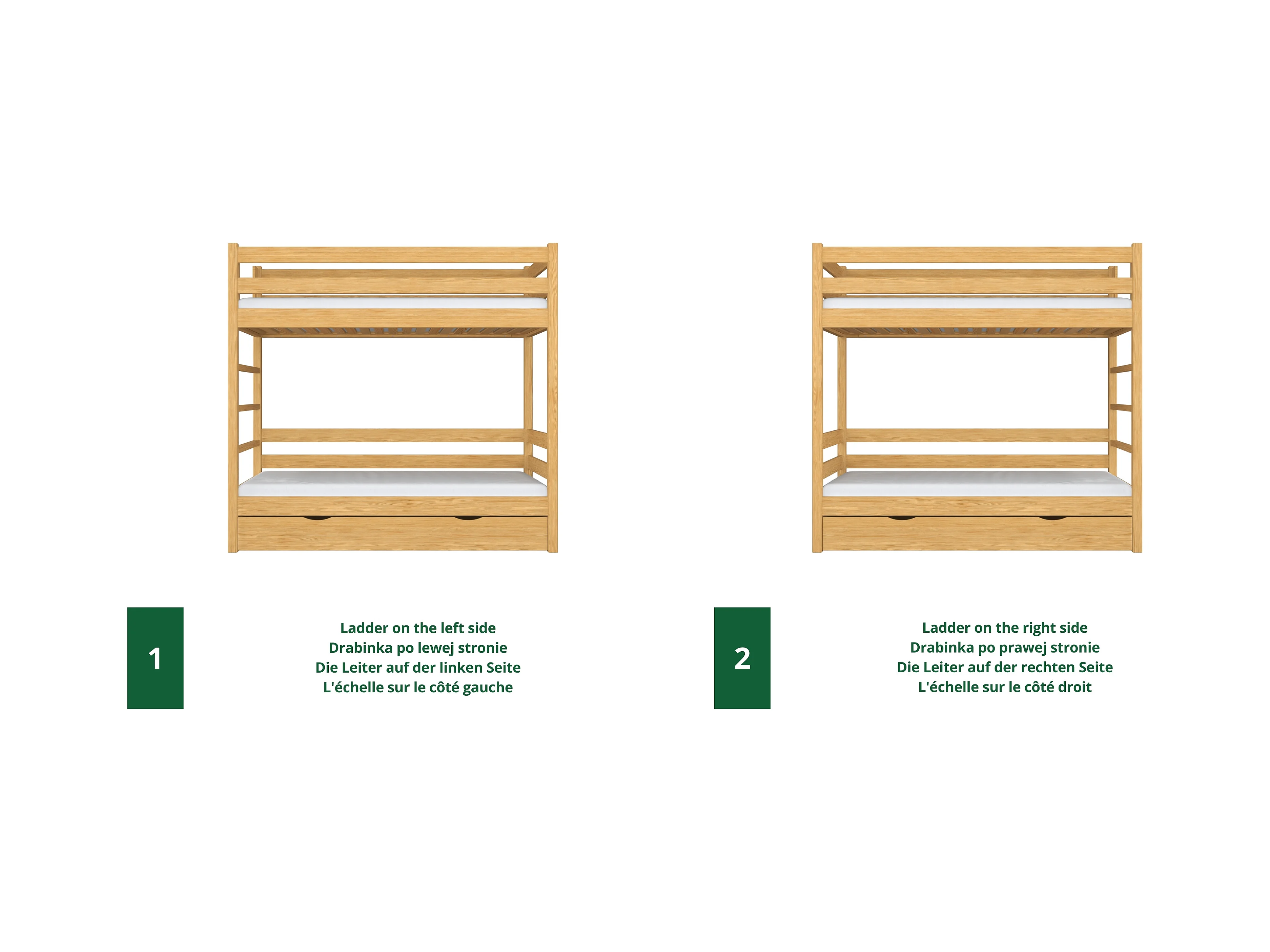 ETAGENBETT N03 mit Matratzenschublade Naturkiefer 80x200