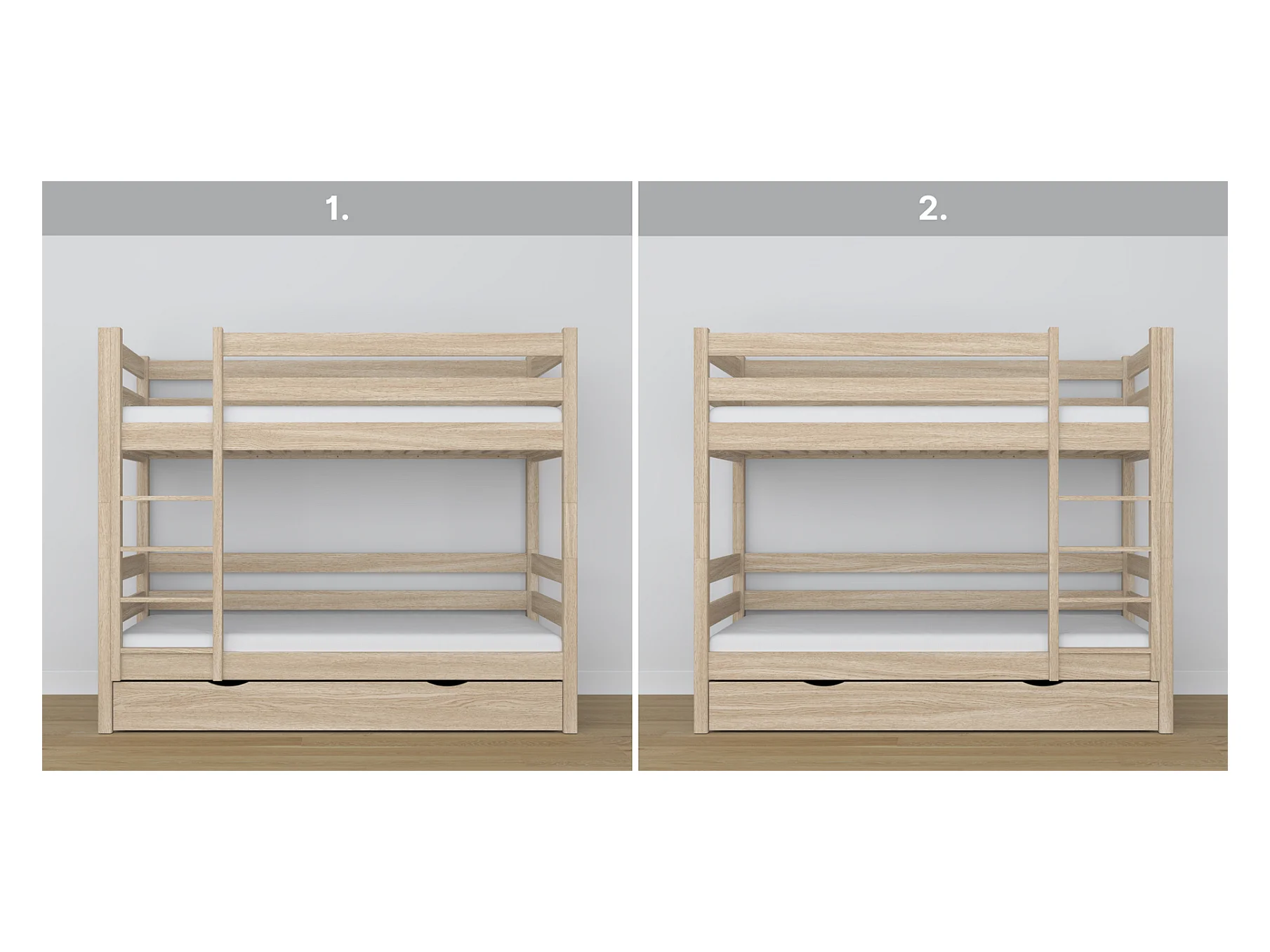 ETAGENBETT N01 mit Schublade Sonoma Eiche 120x200