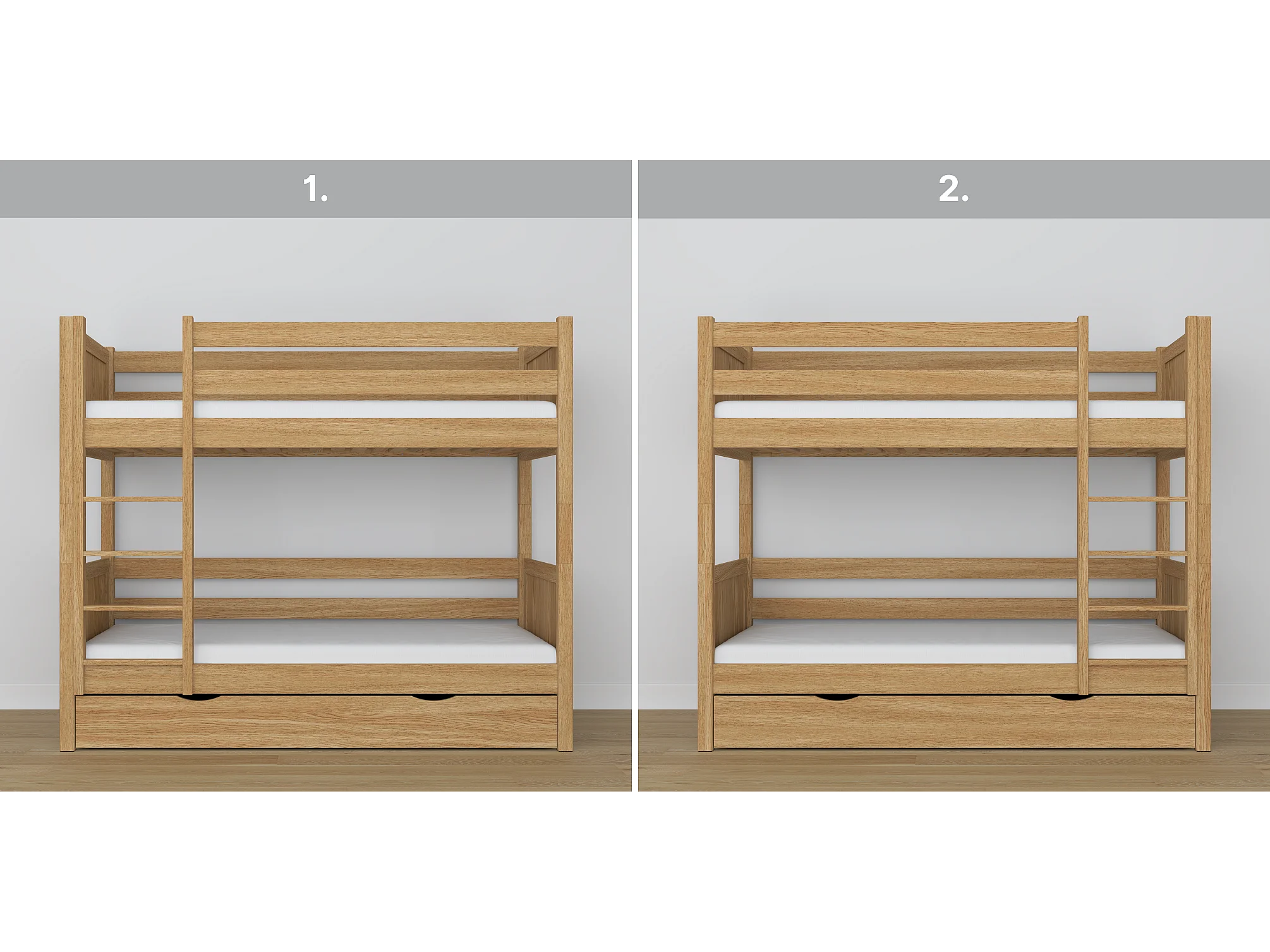 ETAGENBETT N02 mit Schublade Eiche Natur 120x180